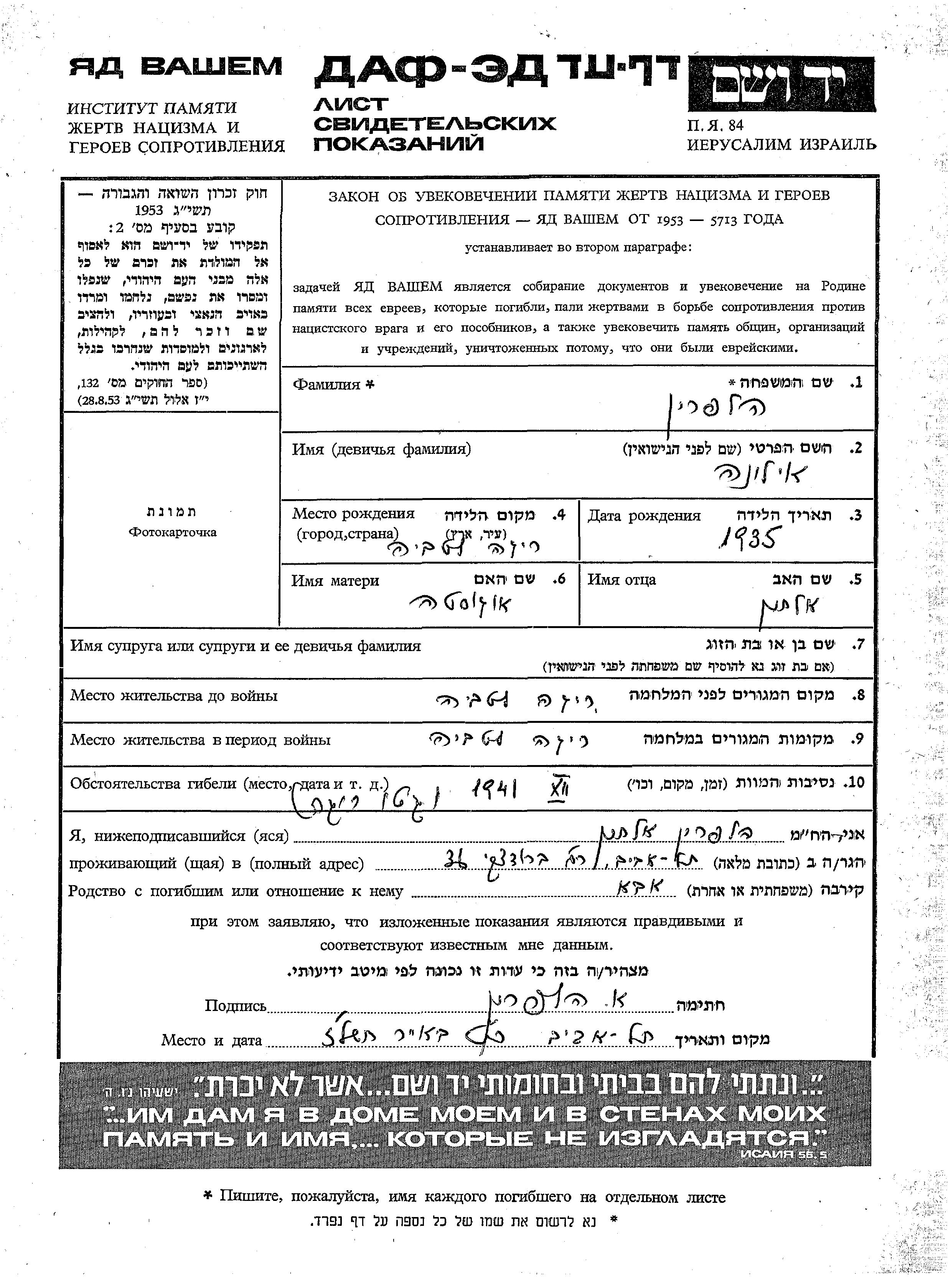 Yad Vashem - Pages of Testimony Names Memorial Collection