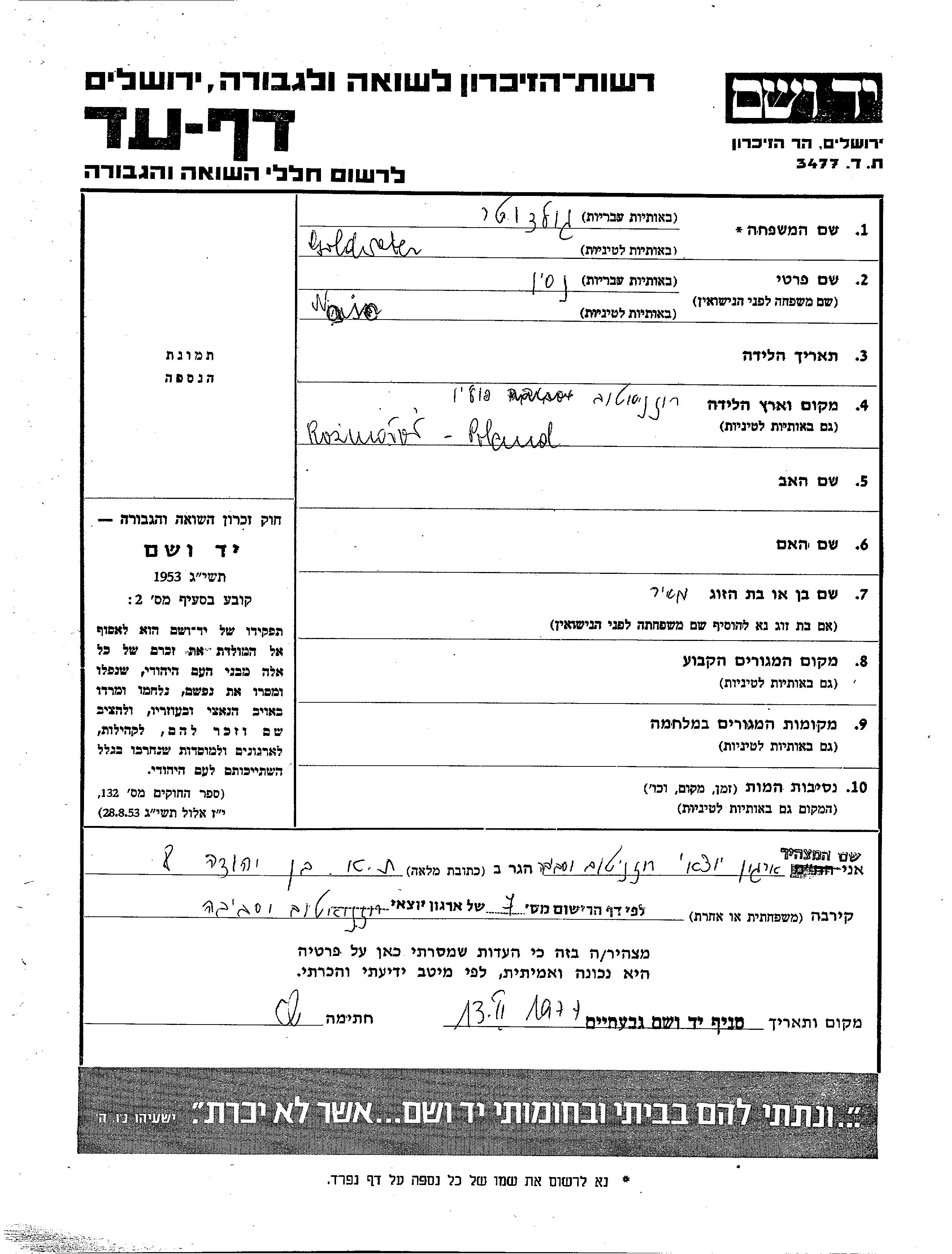 Yad Vashem - Pages of Testimony Names Memorial Collection
