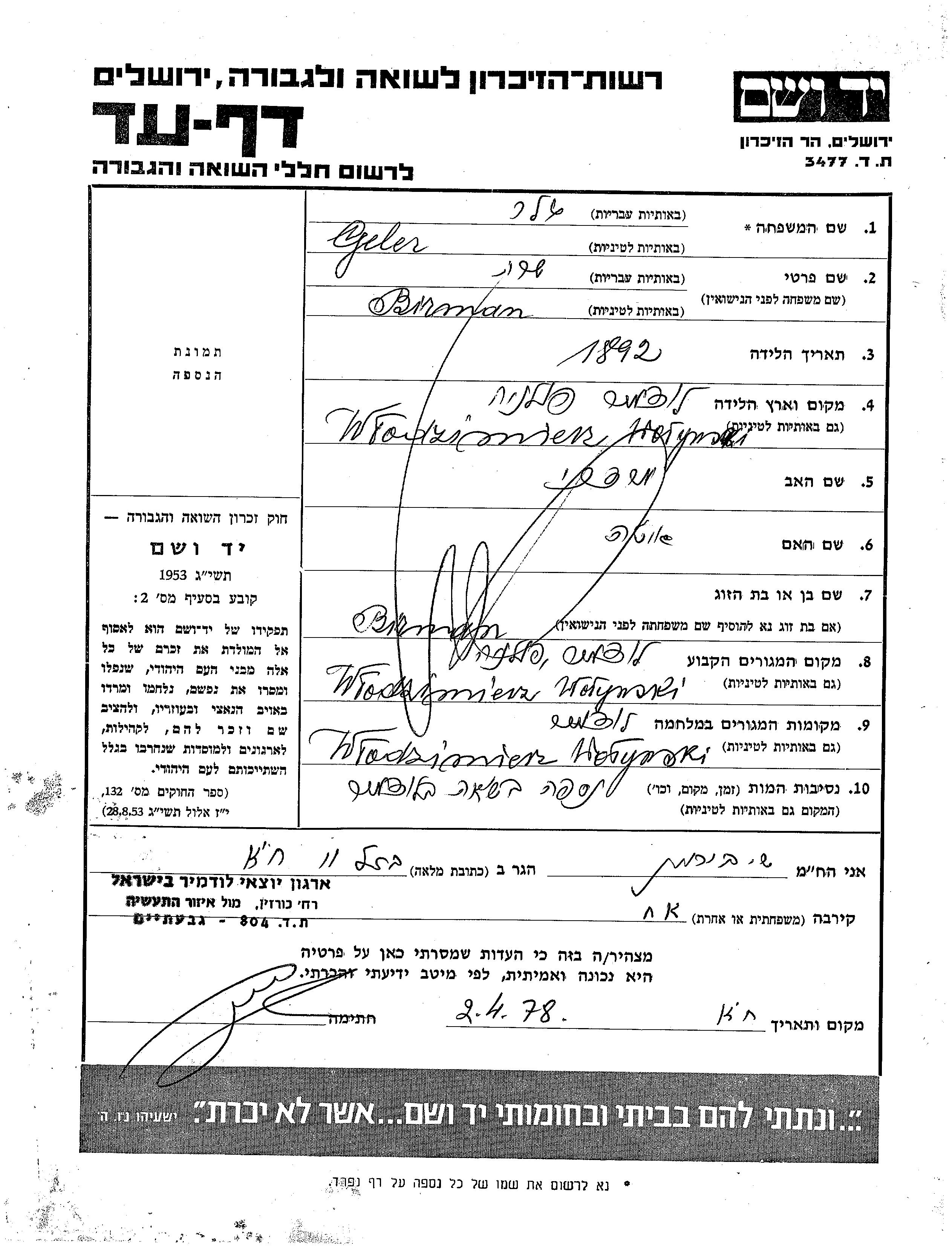 Yad Vashem - Pages of Testimony Names Memorial Collection