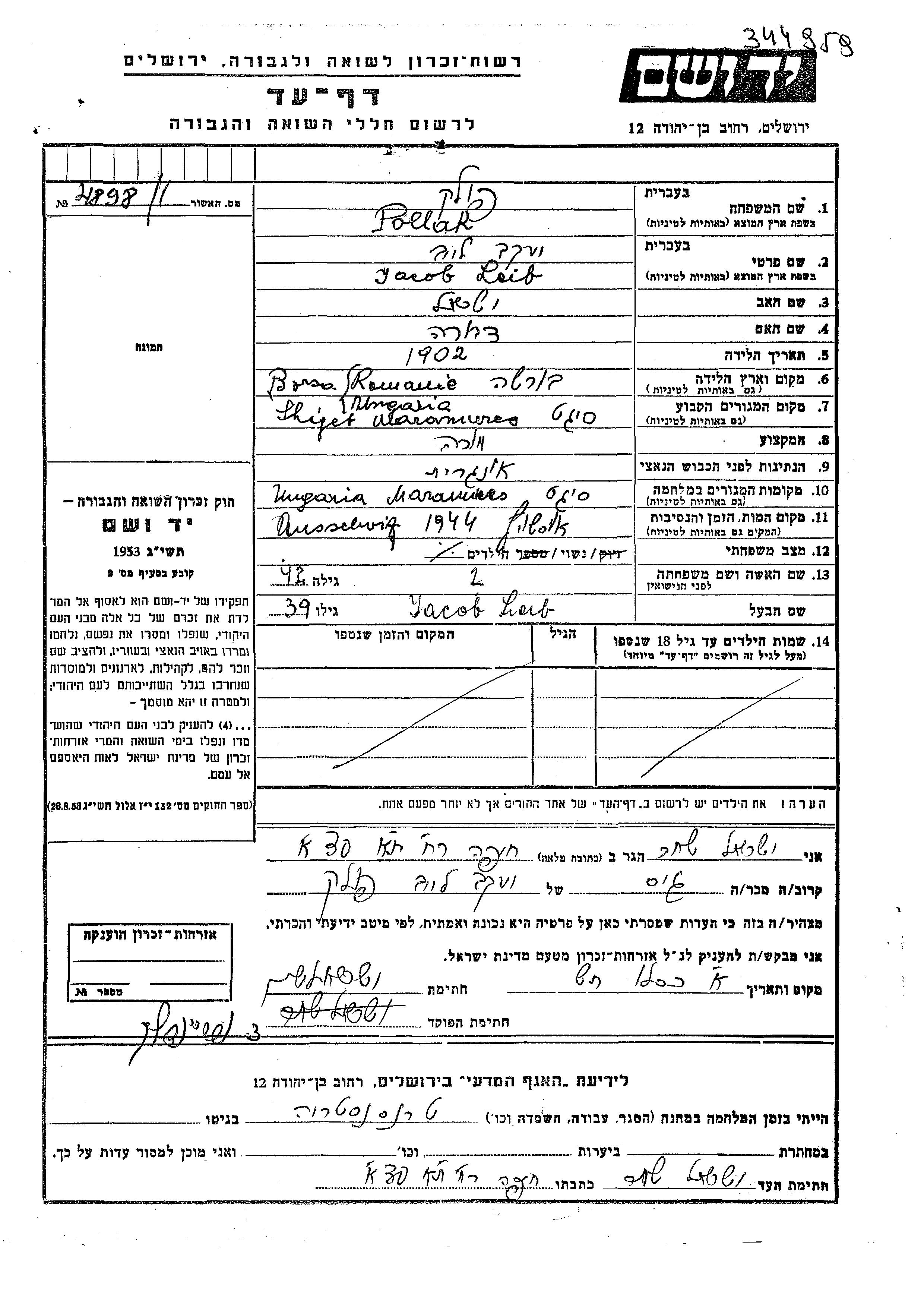 Polak | Yakow Leib | 1904 | Borsa, Roumanie | Feuille de témoignage |