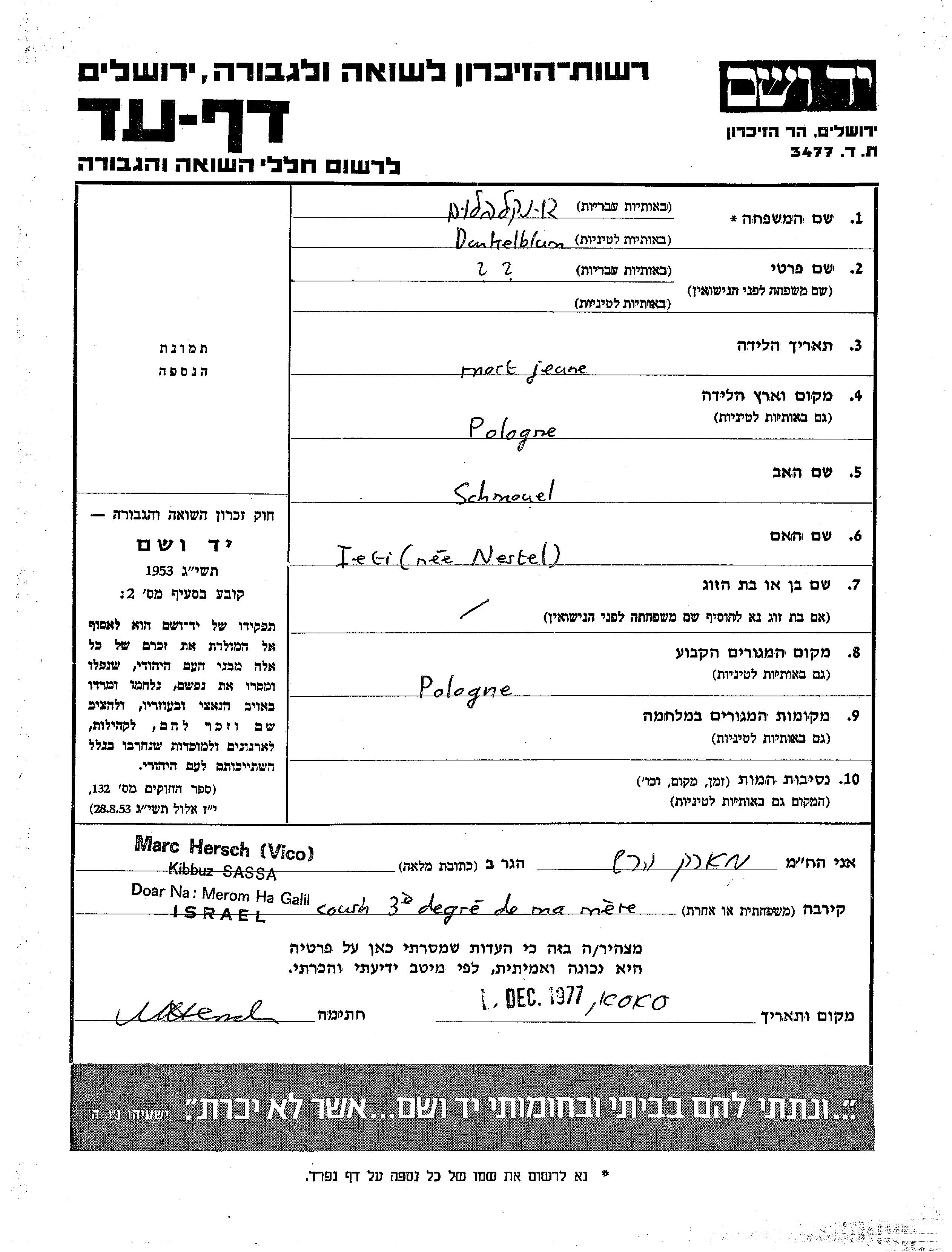 Yad Vashem - Pages of Testimony Names Memorial Collection