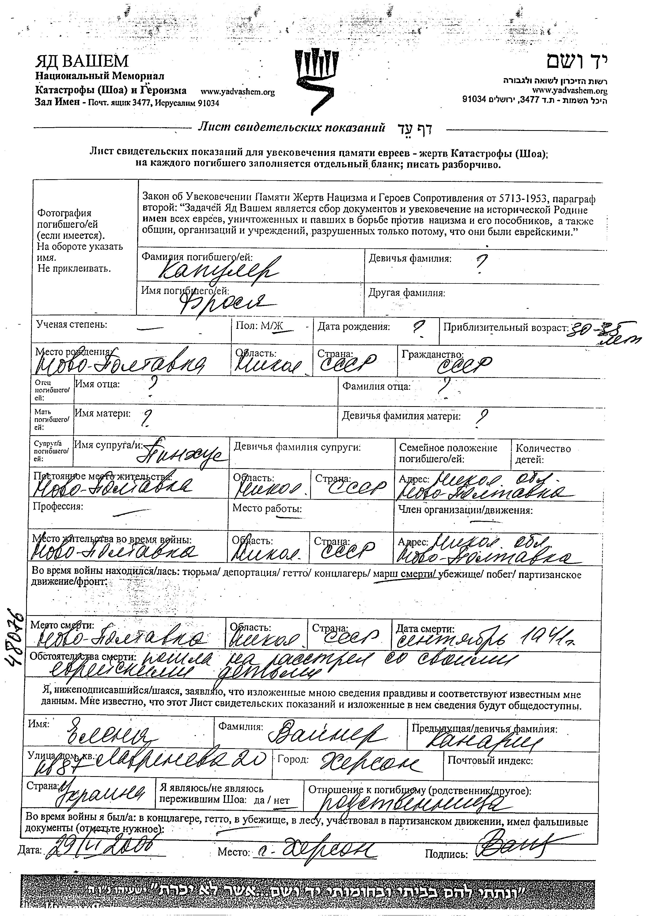 Yad Vashem - Pages of Testimony Names Memorial Collection