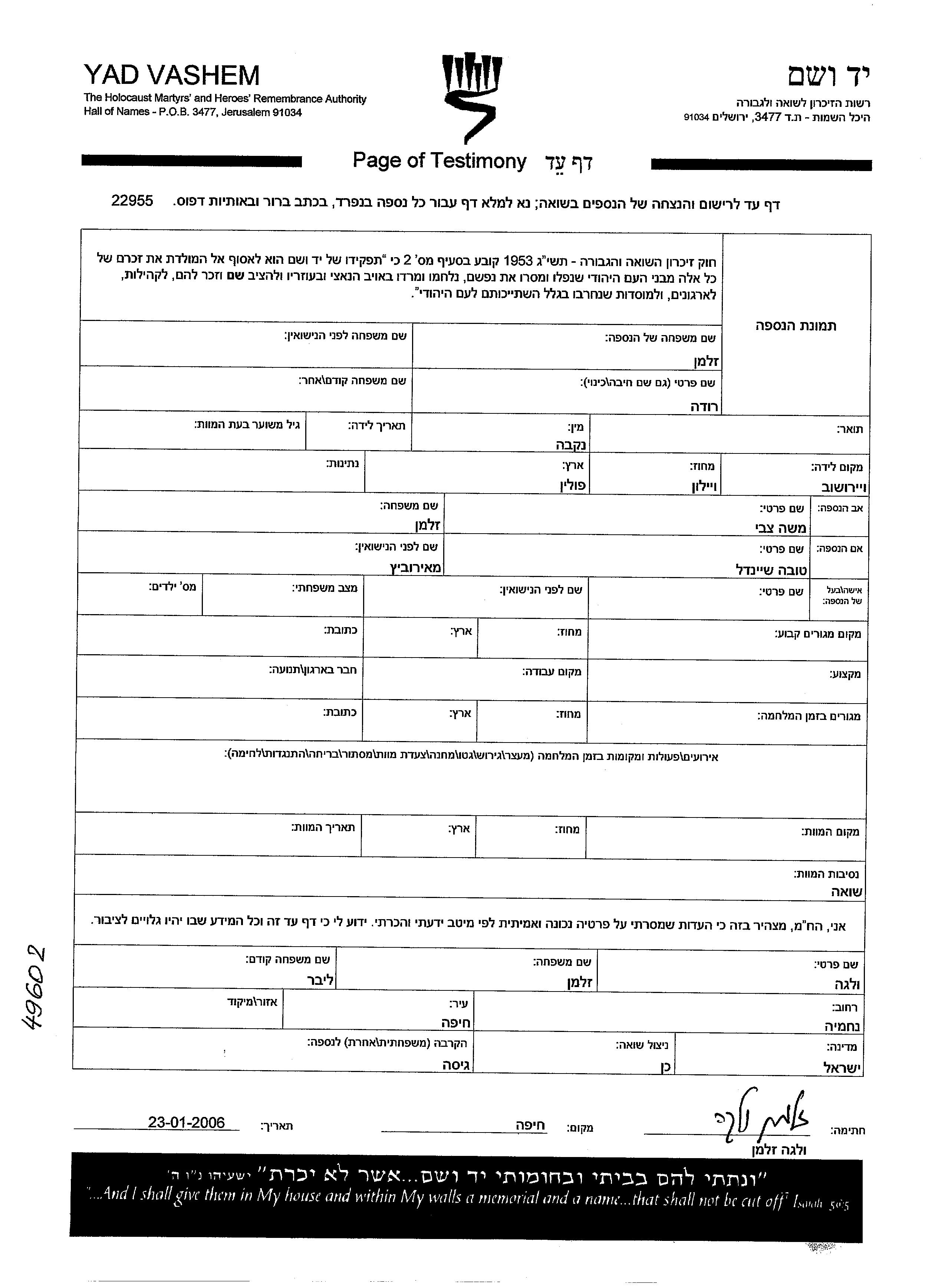 Yad Vashem - Pages of Testimony Names Memorial Collection