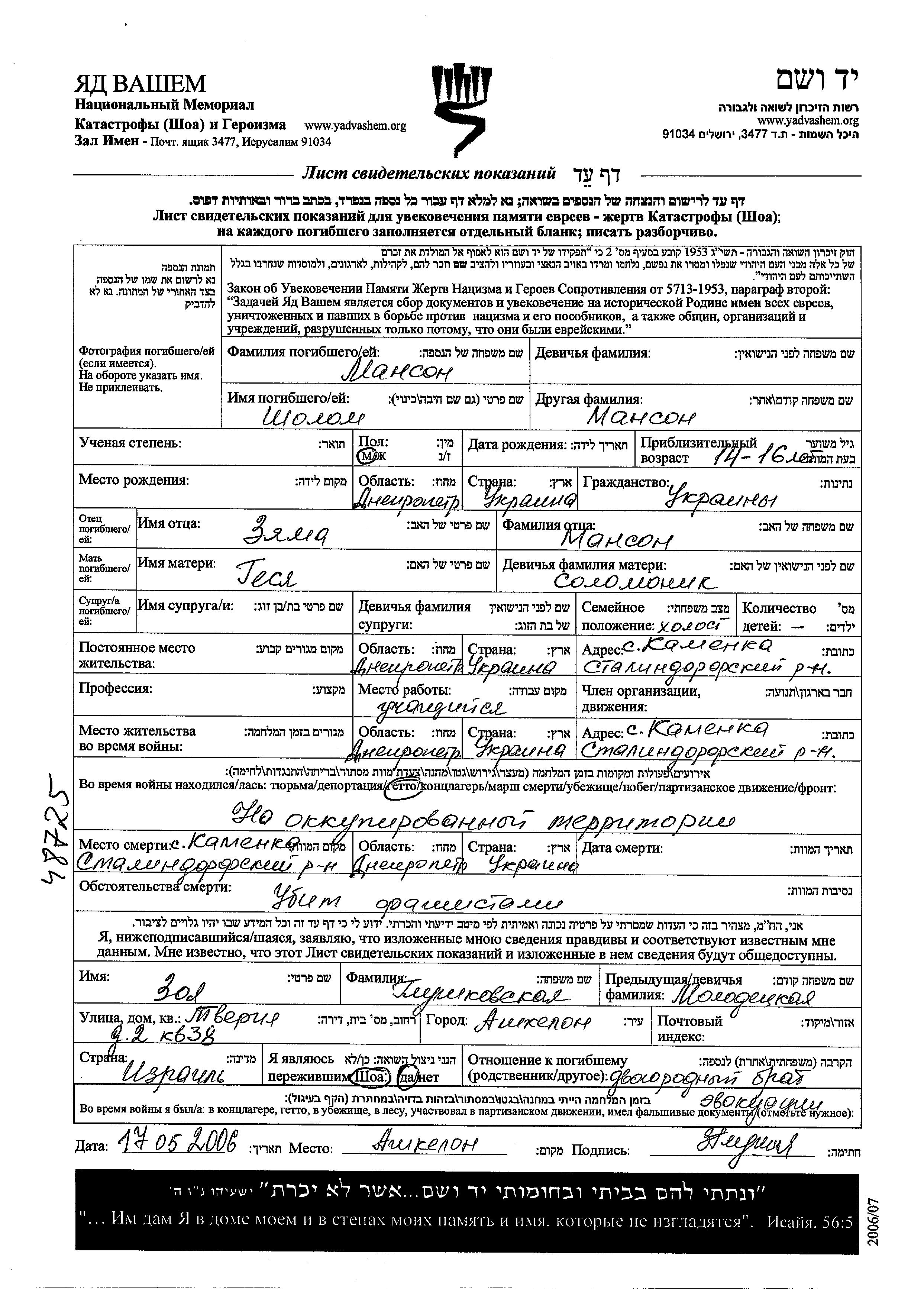 Recherche par date de la mort pendant la période de la Shoah: 1933-1945. Sélectionnez 'Exact'; dans la liste pour rechercher l'année exacte, ou sélectionner '+/- 2 ans'; ou '+/- 5 ans