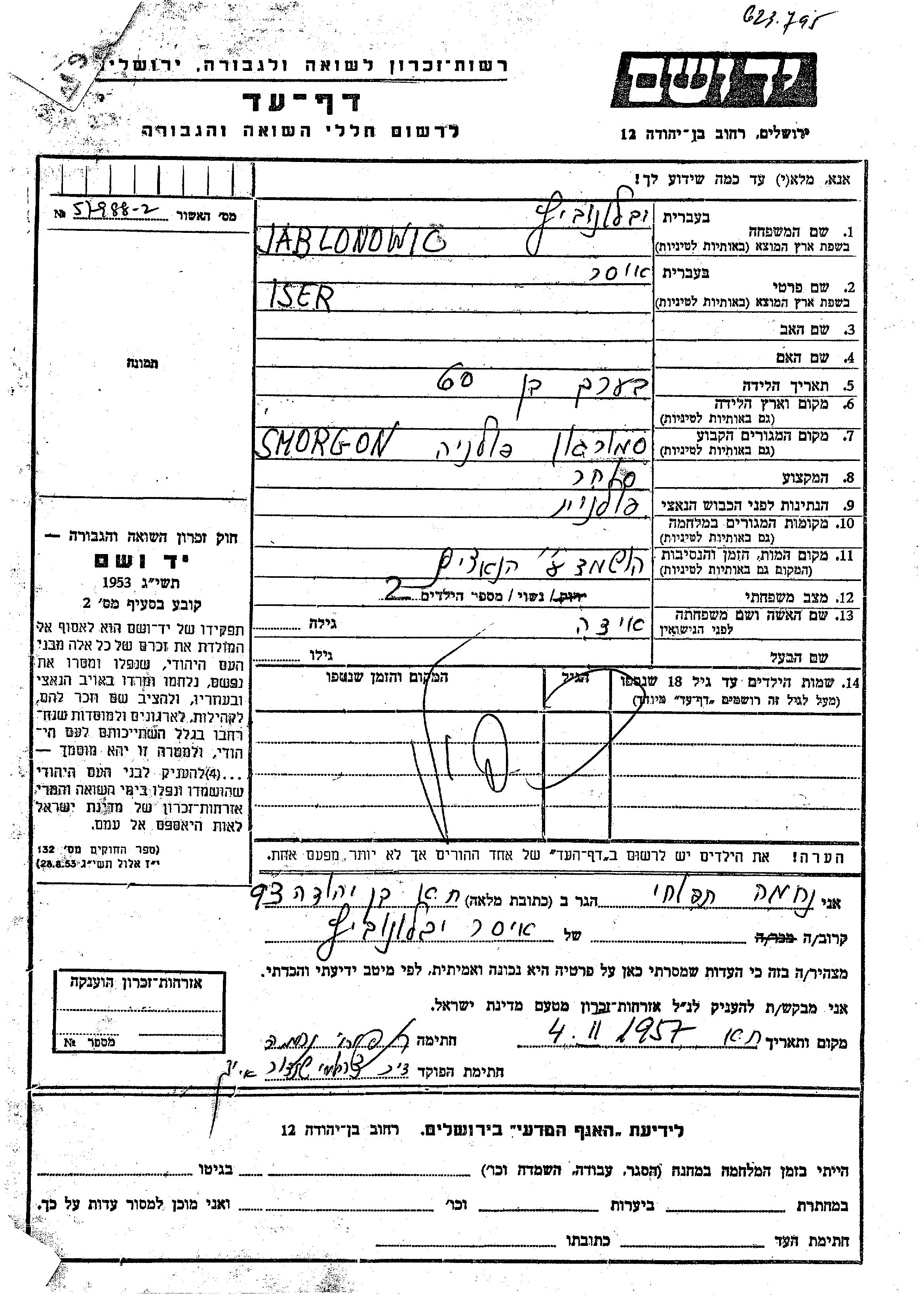 Yad Vashem - Pages of Testimony Names Memorial Collection