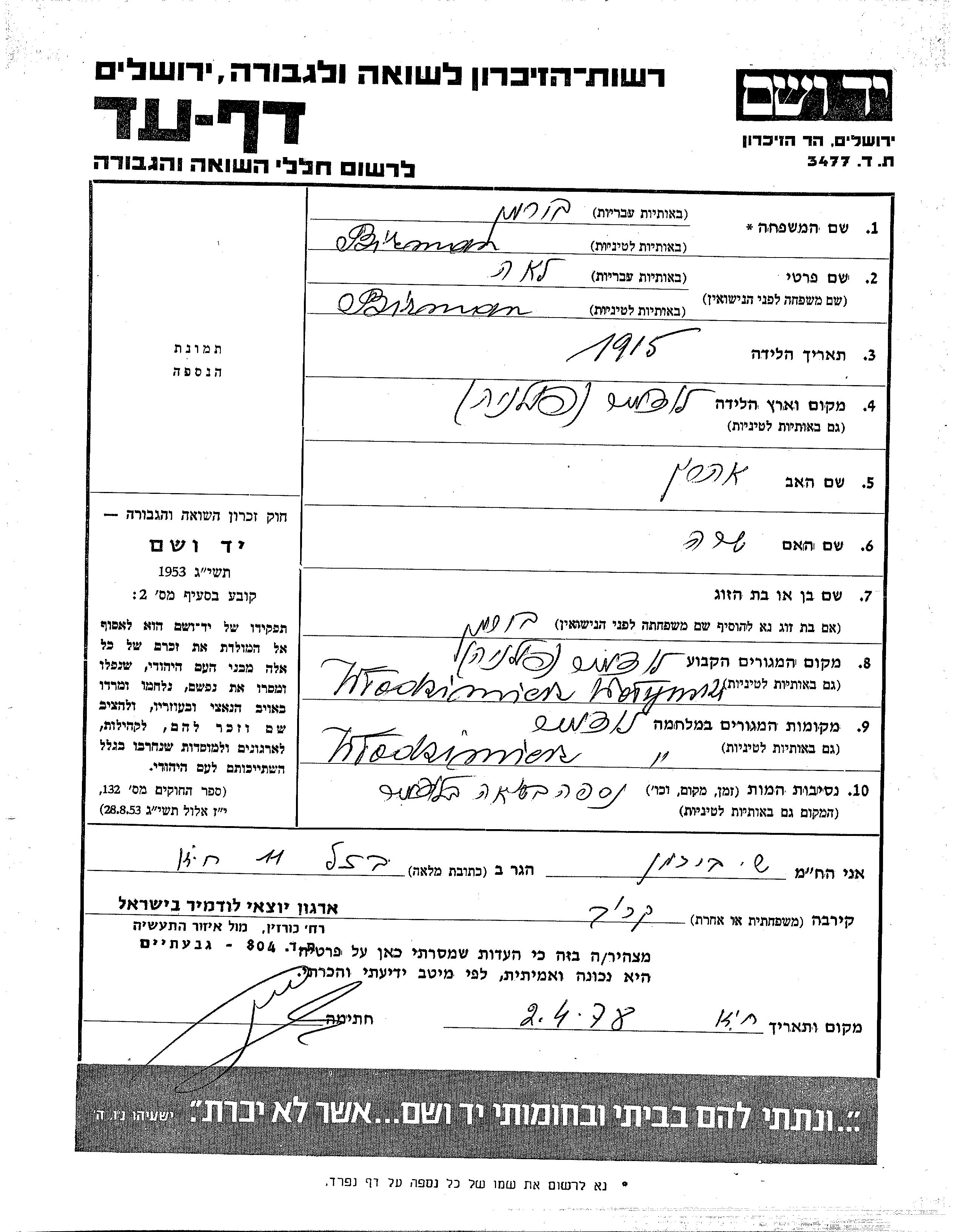 Yad Vashem - Pages of Testimony Names Memorial Collection