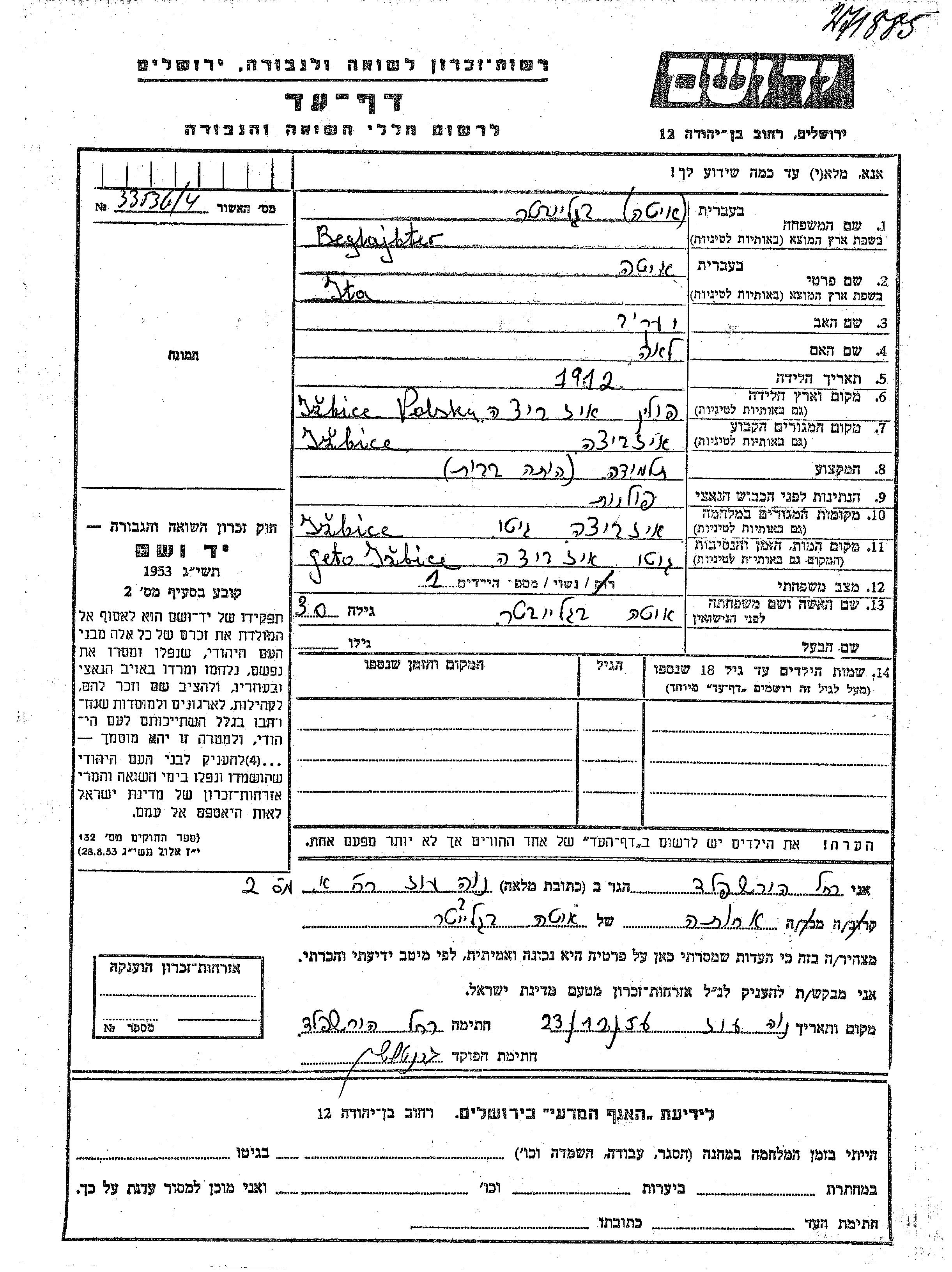 Yad Vashem - Pages of Testimony Names Memorial Collection