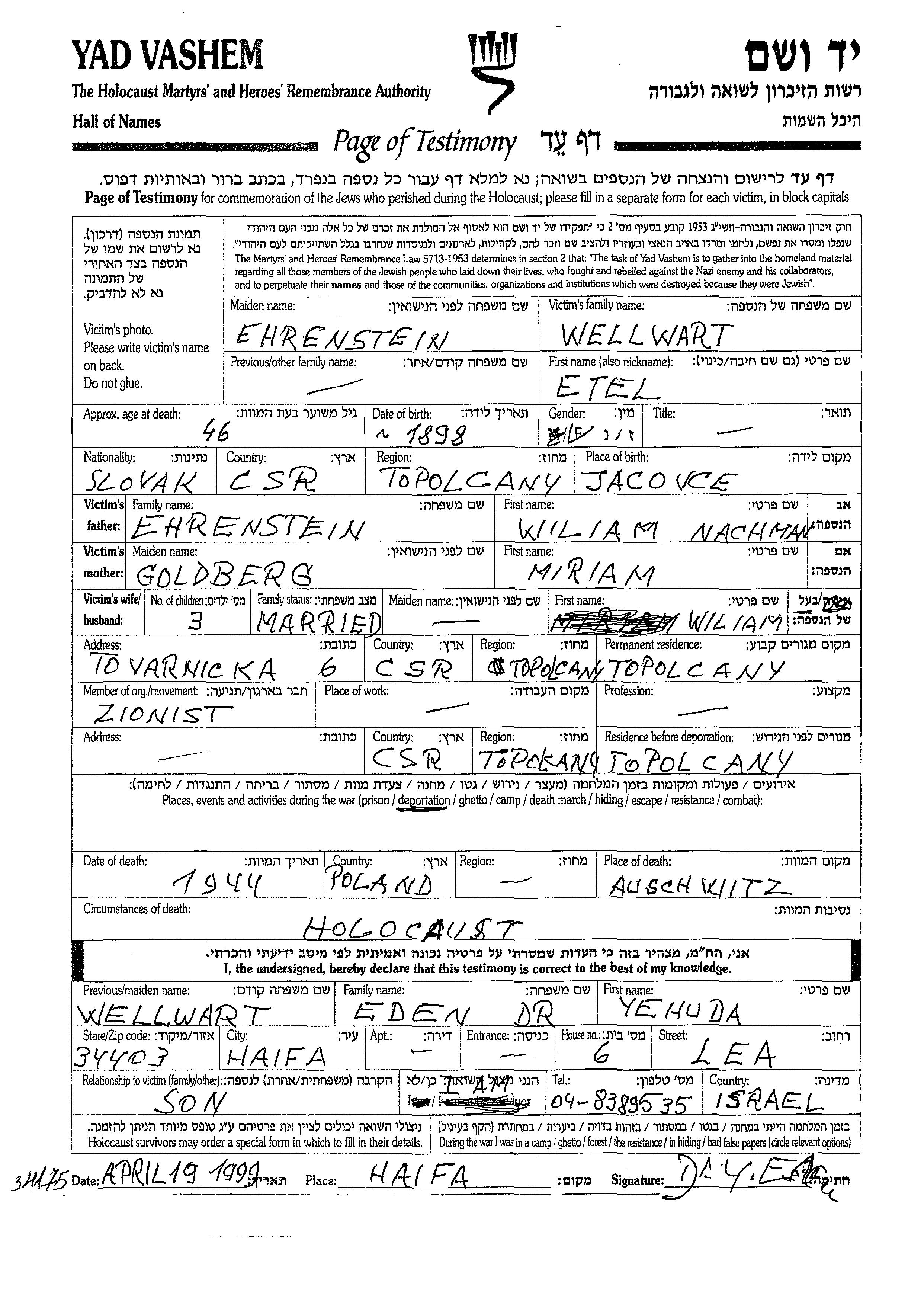 Yad Vashem - Pages of Testimony Names Memorial Collection
