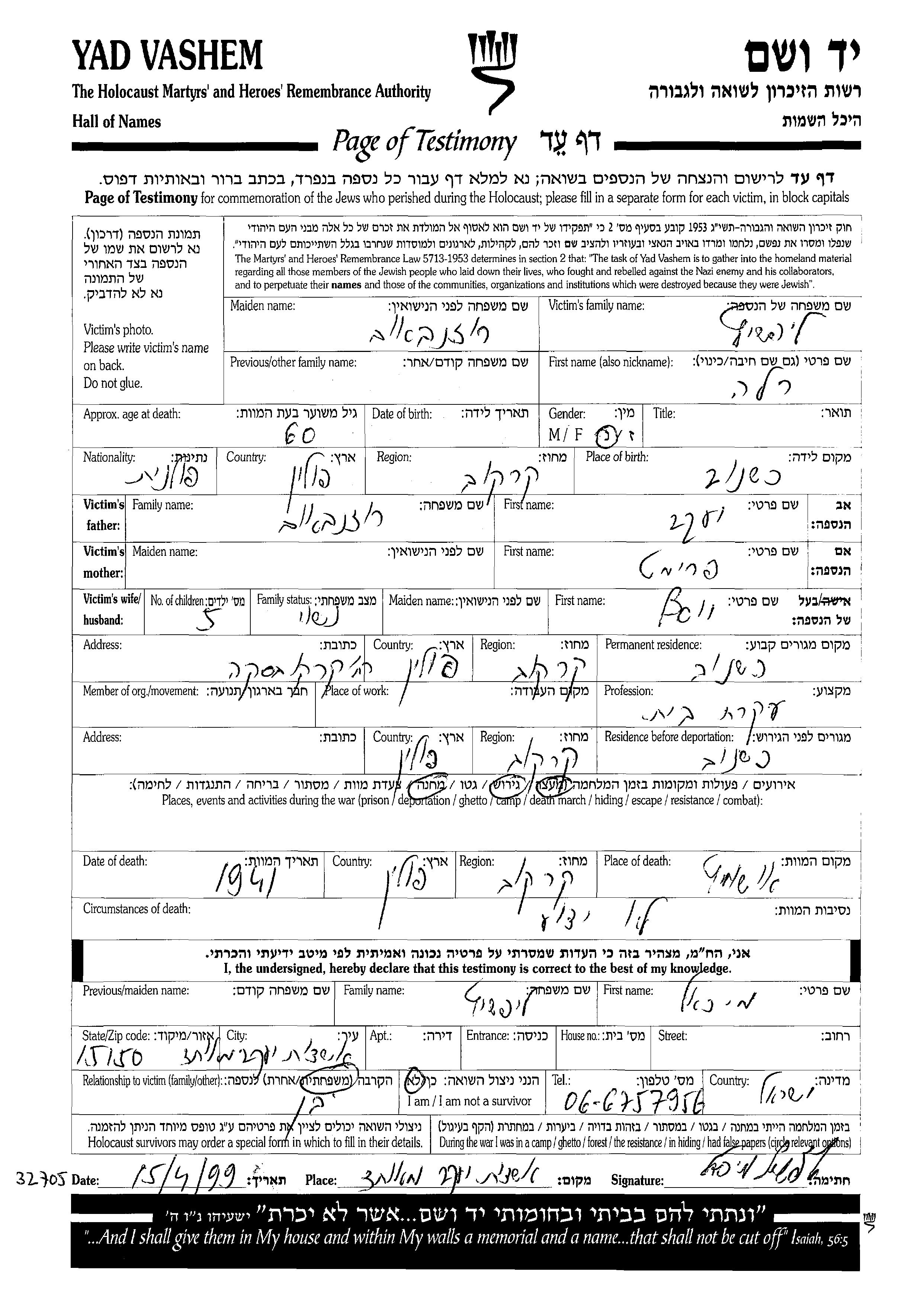 Yad Vashem - Pages of Testimony Names Memorial Collection