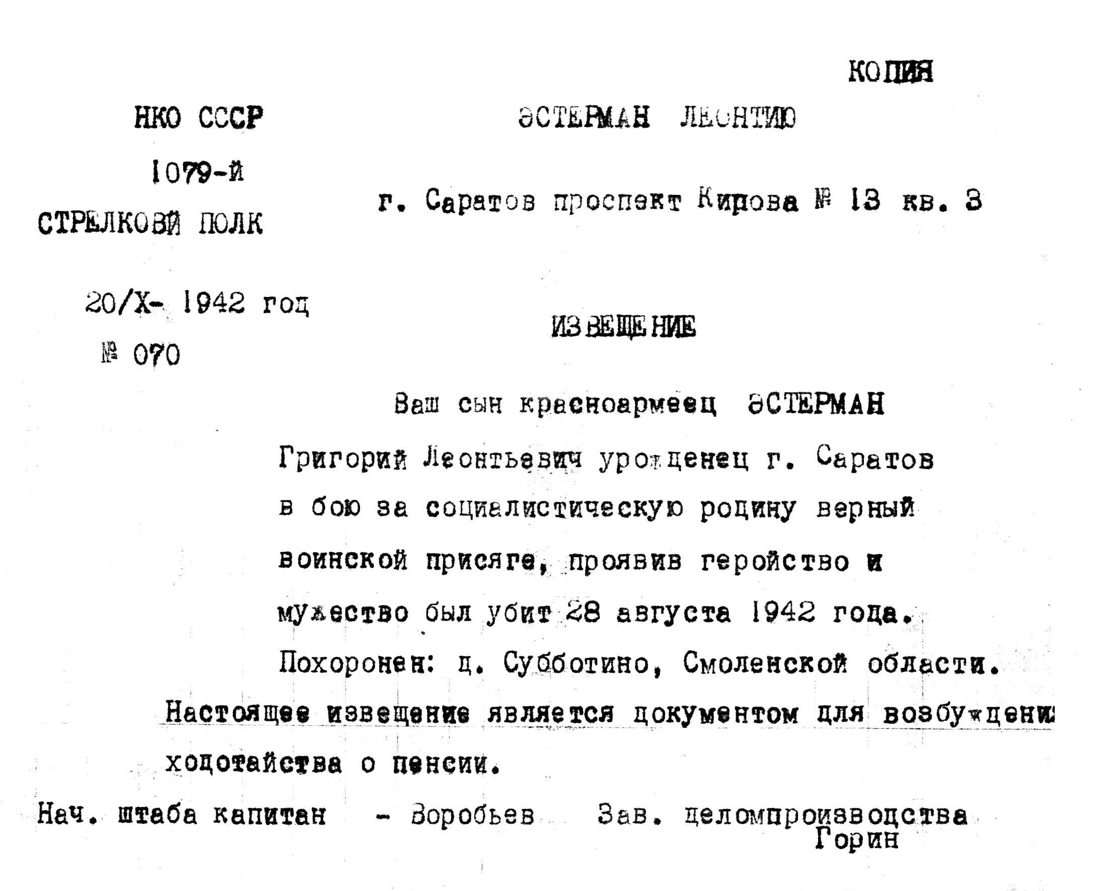 Esterman | Grigorii | endroit inconnu, | Documents personnels | |