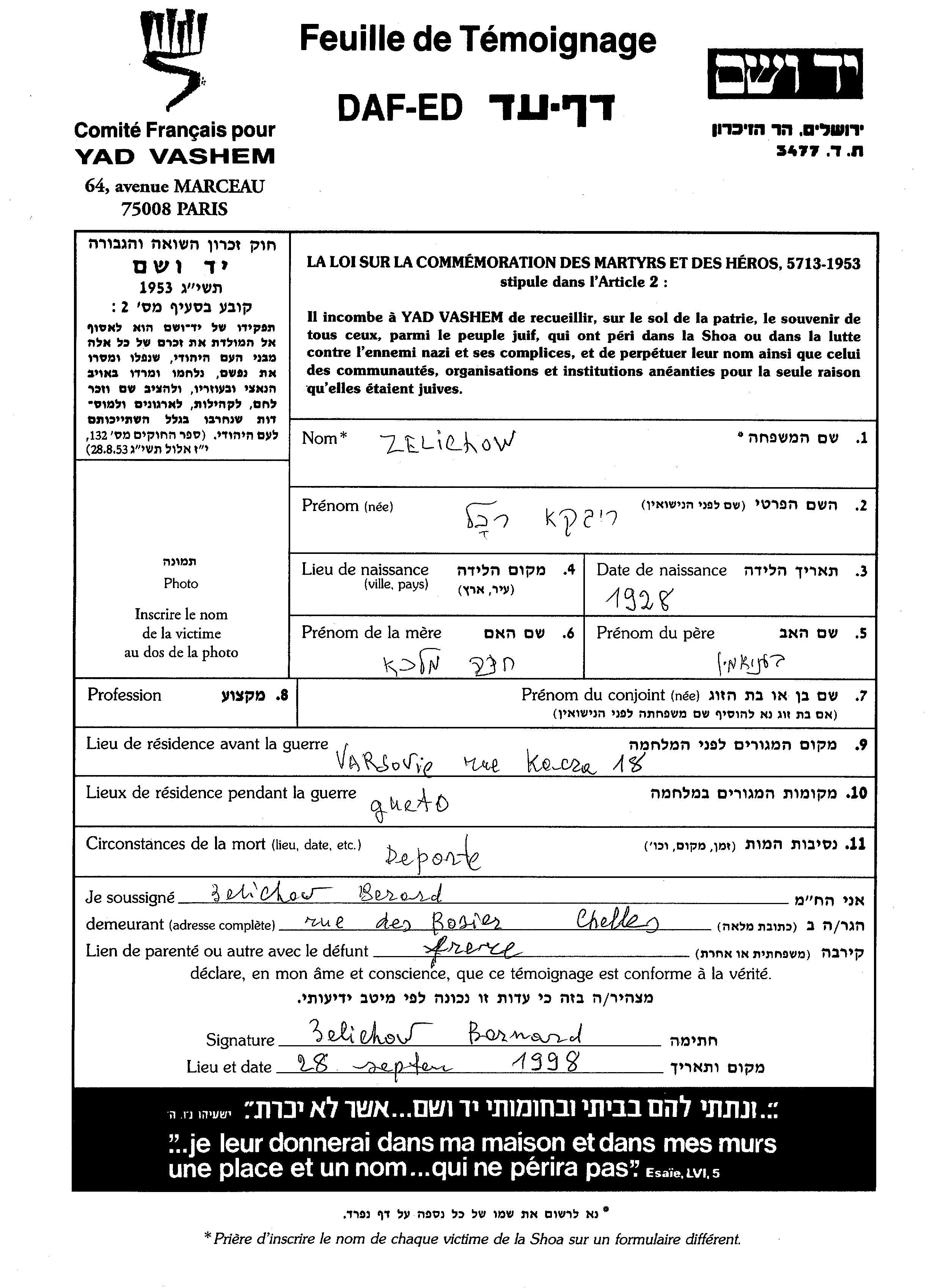 Recherche par nom du dépositeur de la Feuille de témoignage. Cette recherché indique aussi les noms de jeunes filles.