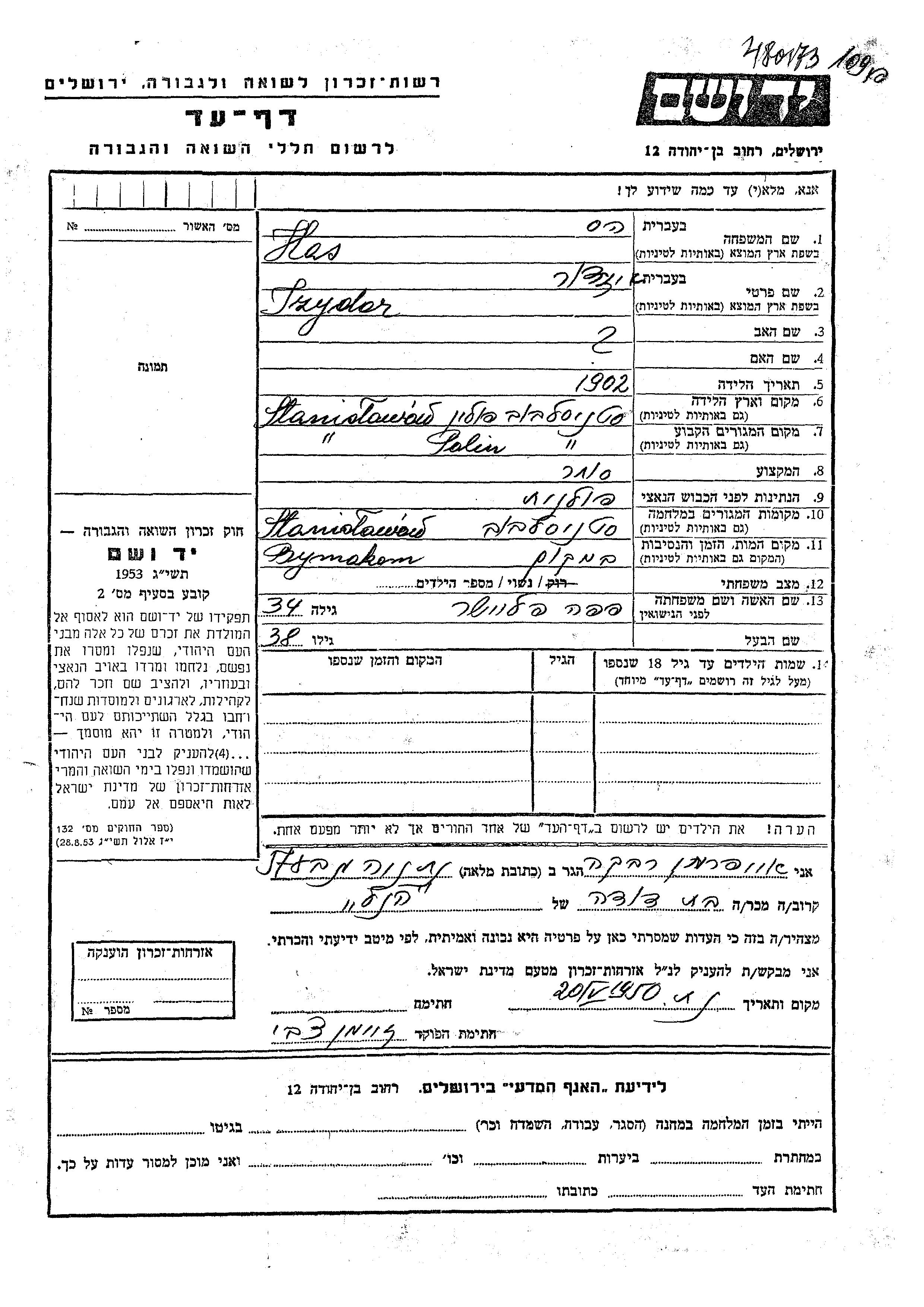 Jzydor a été assassiné pendant la Shoah. Lieu de la mort: Stanislau, Pologne.