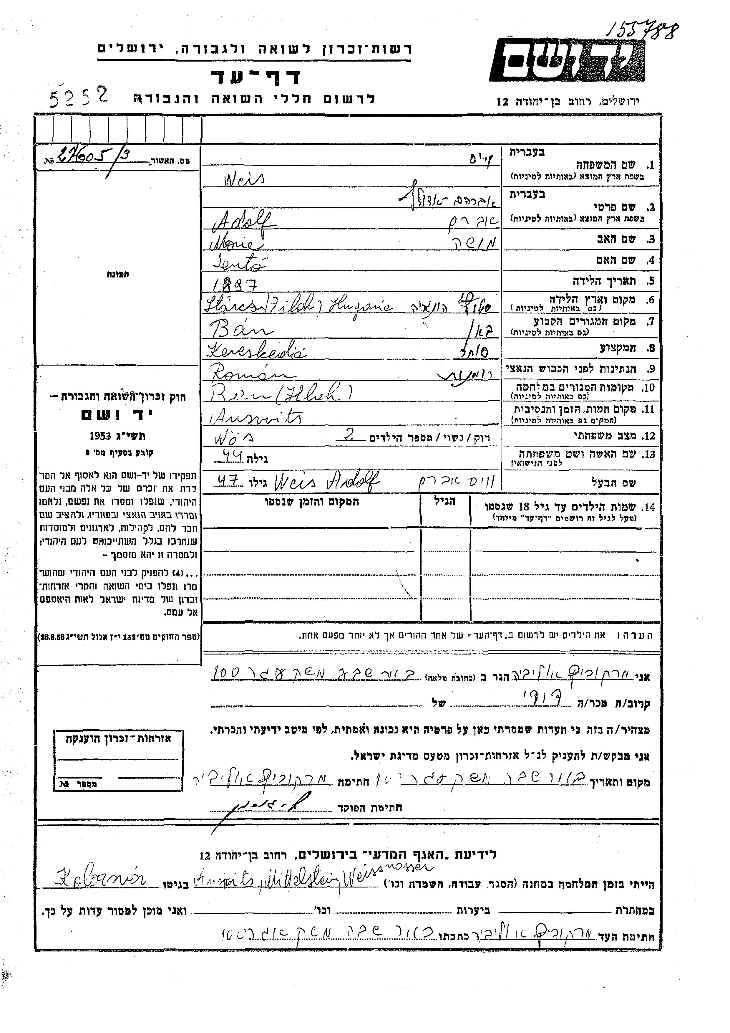 Yad Vashem - Pages of Testimony Names Memorial Collection