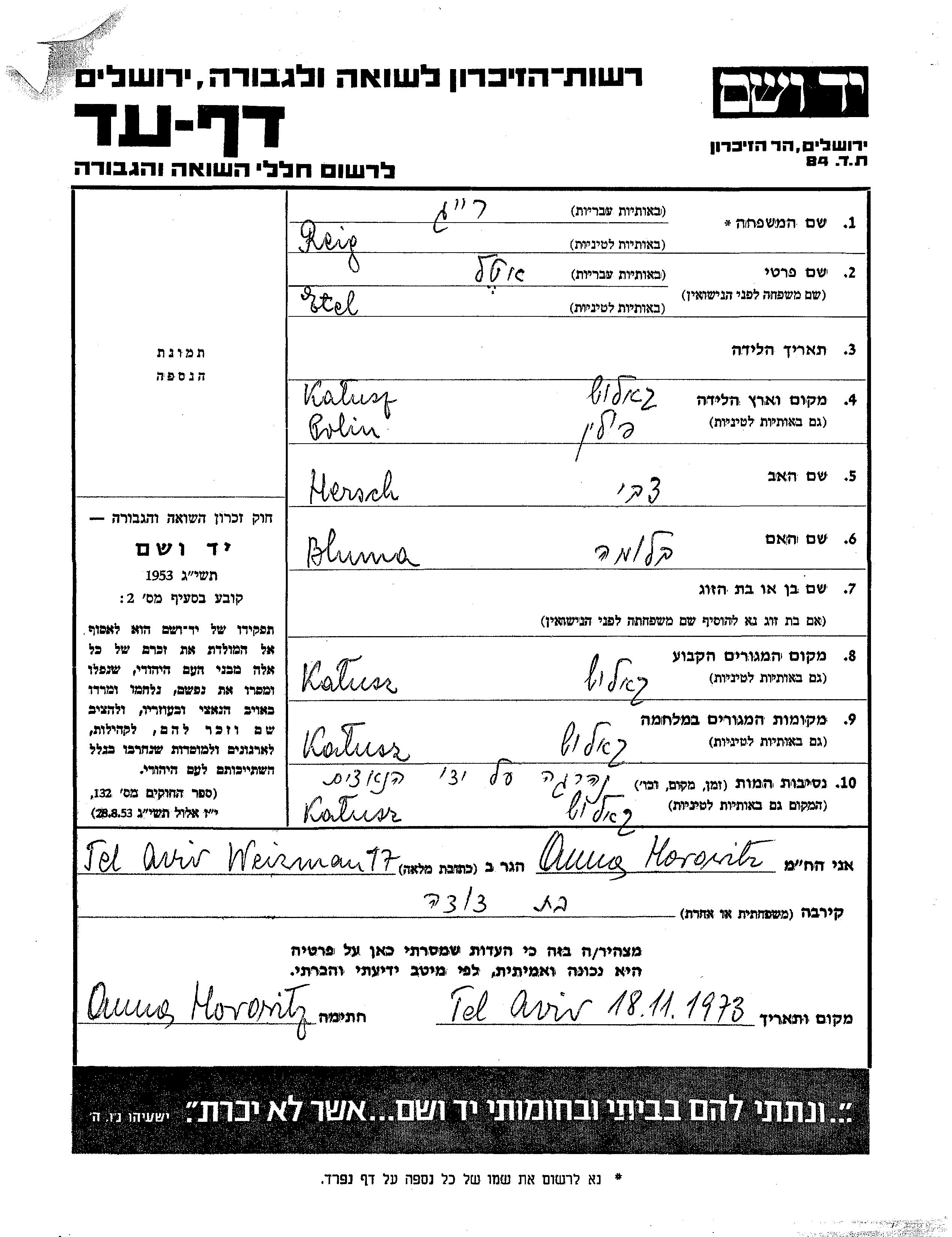 Yad Vashem - Pages of Testimony Names Memorial Collection