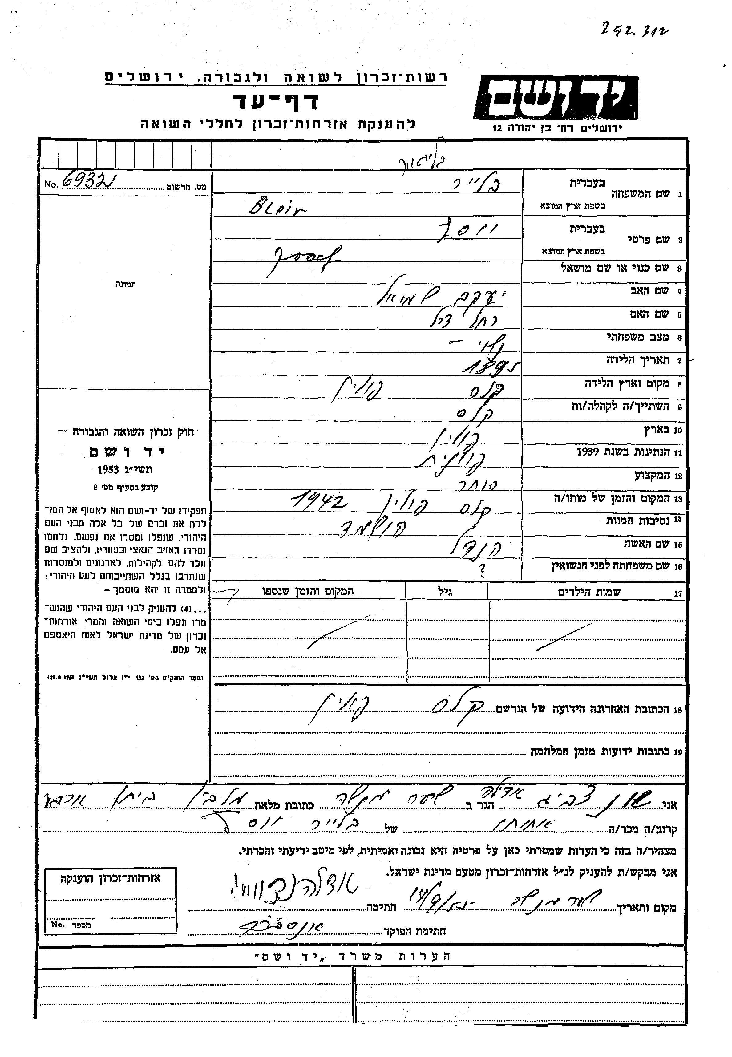 Yad Vashem - Pages of Testimony Names Memorial Collection
