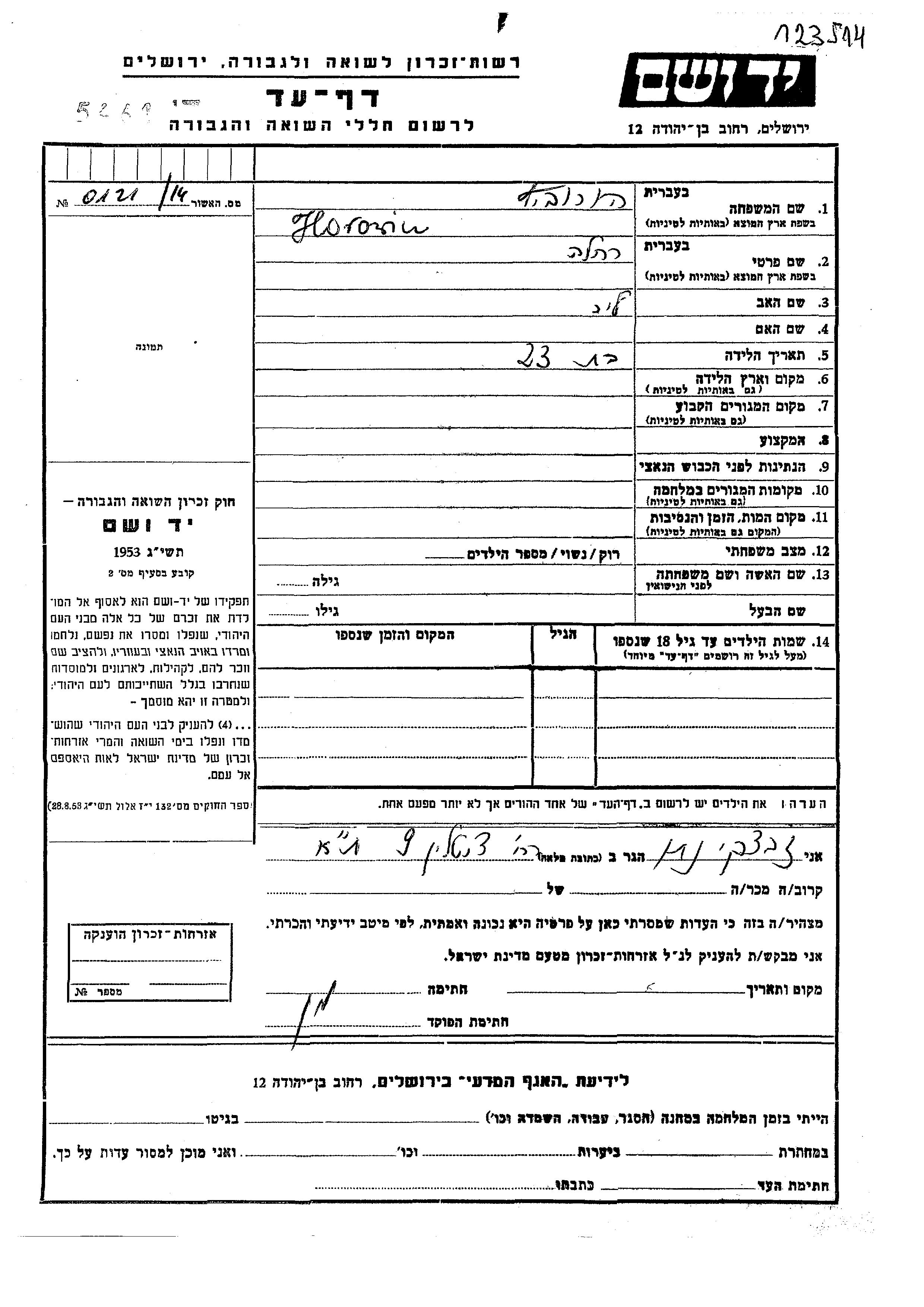 Yad Vashem - Pages of Testimony Names Memorial Collection