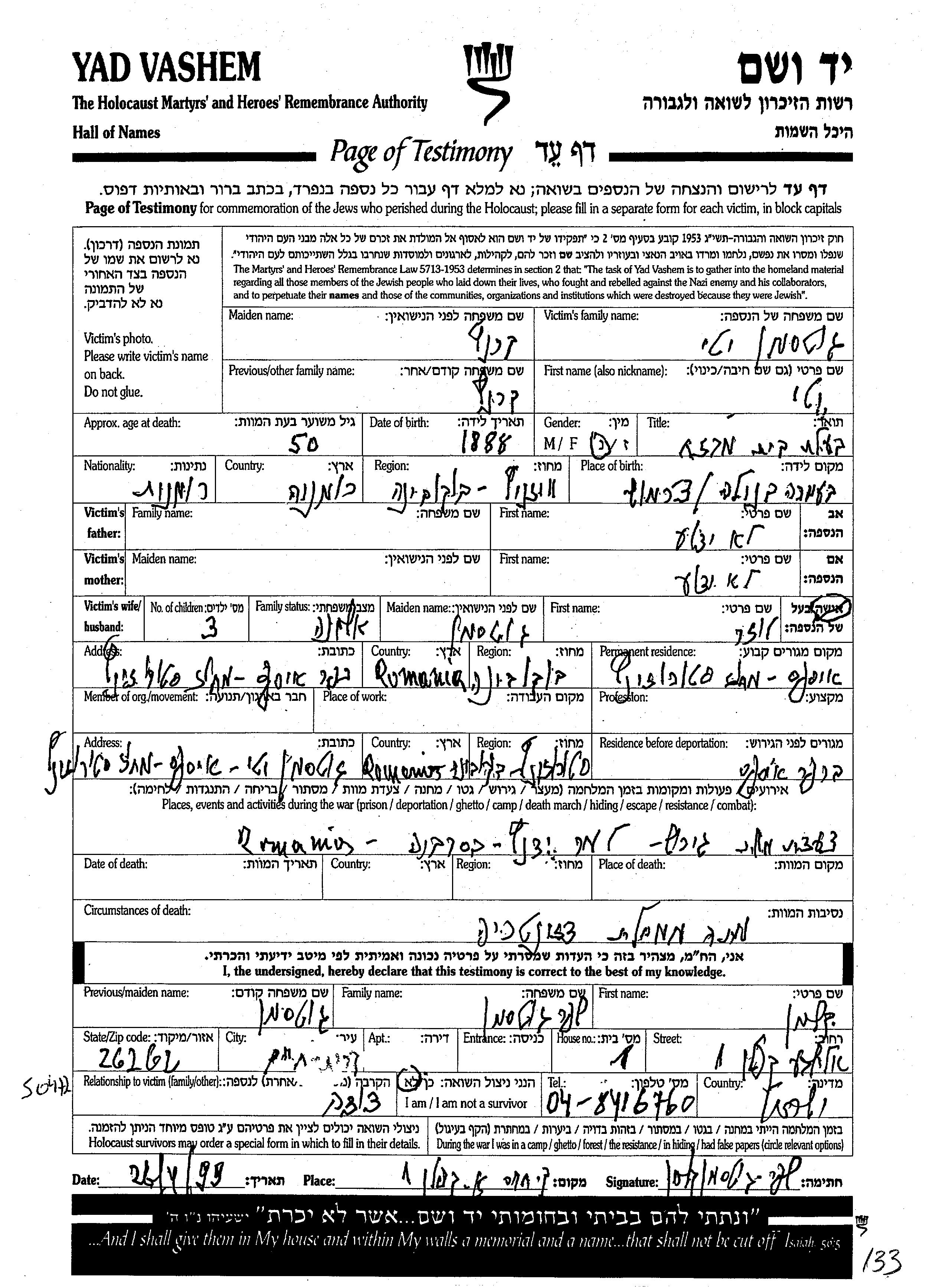 Yad Vashem - Pages of Testimony Names Memorial Collection