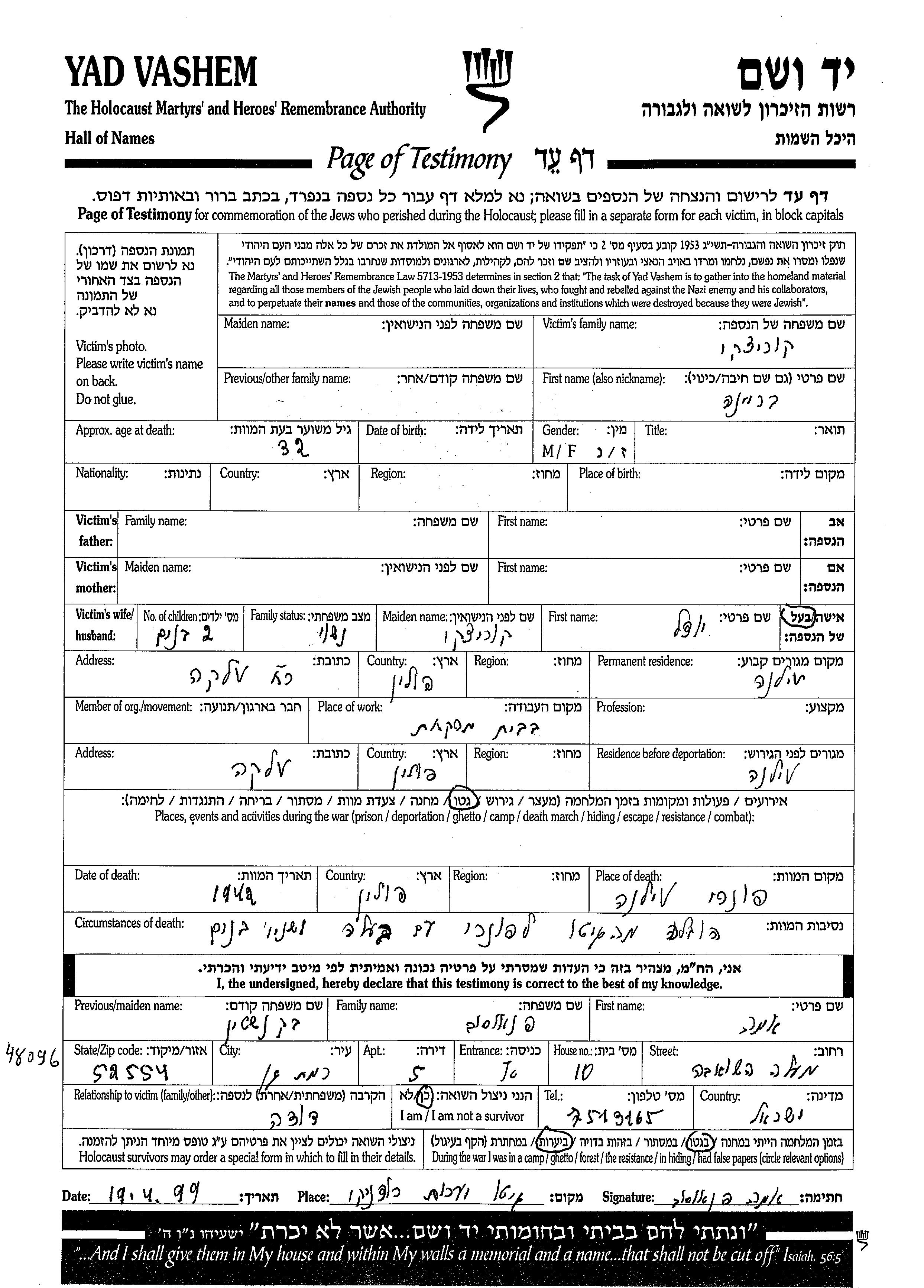 Yad Vashem - Pages of Testimony Names Memorial Collection