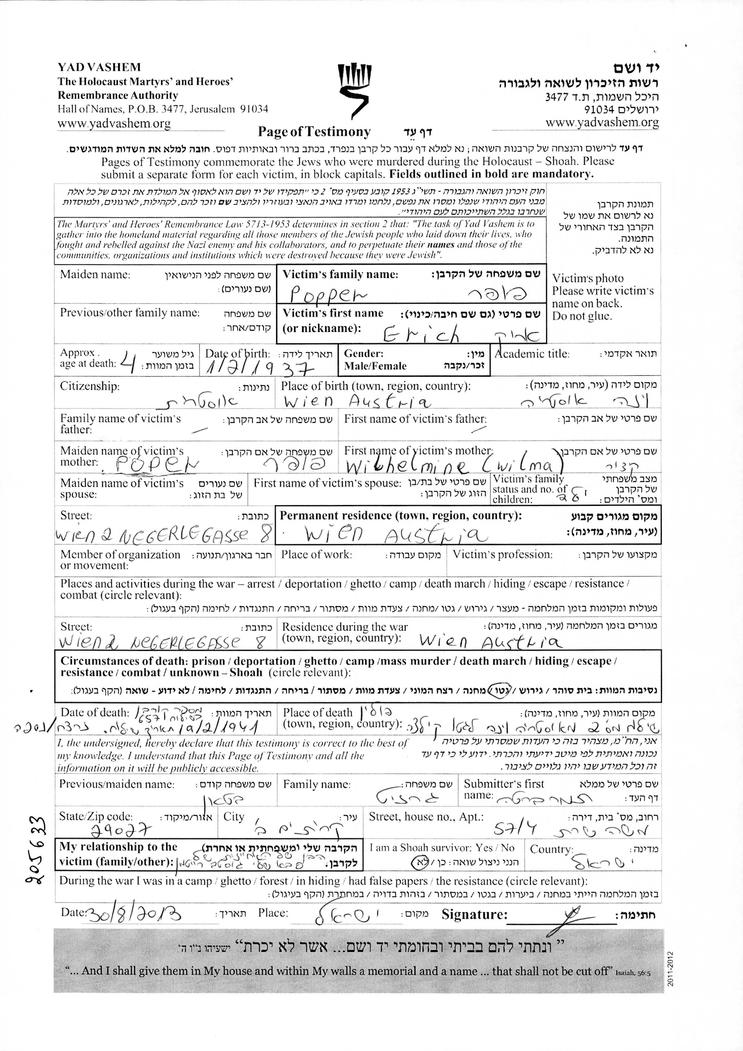 Yad Vashem - Pages of Testimony Names Memorial Collection