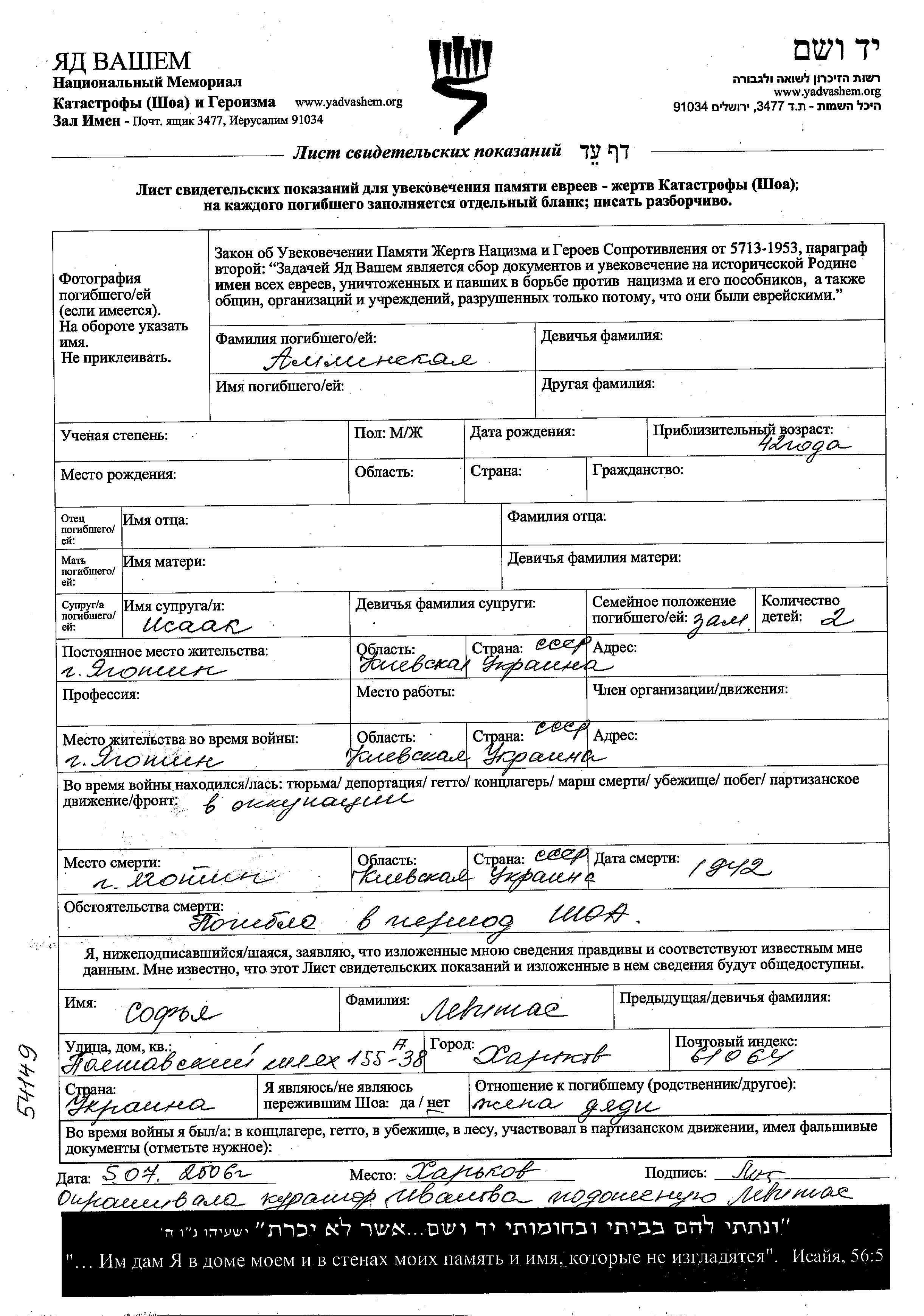 Yad Vashem - Pages of Testimony Names Memorial Collection