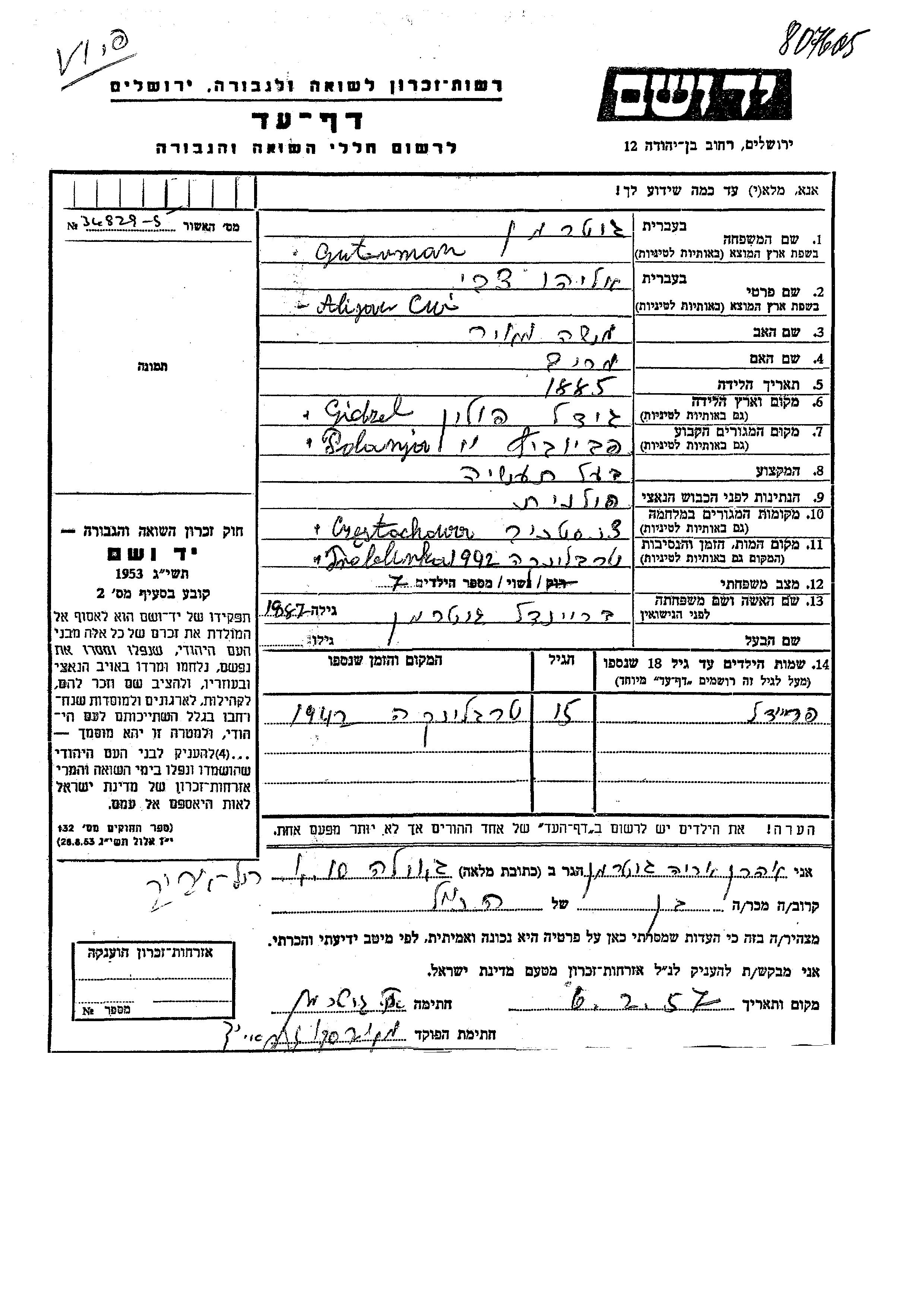 Guterman Alijau Cwi 1885 Pabianice, Pologne Feuille de témoignage