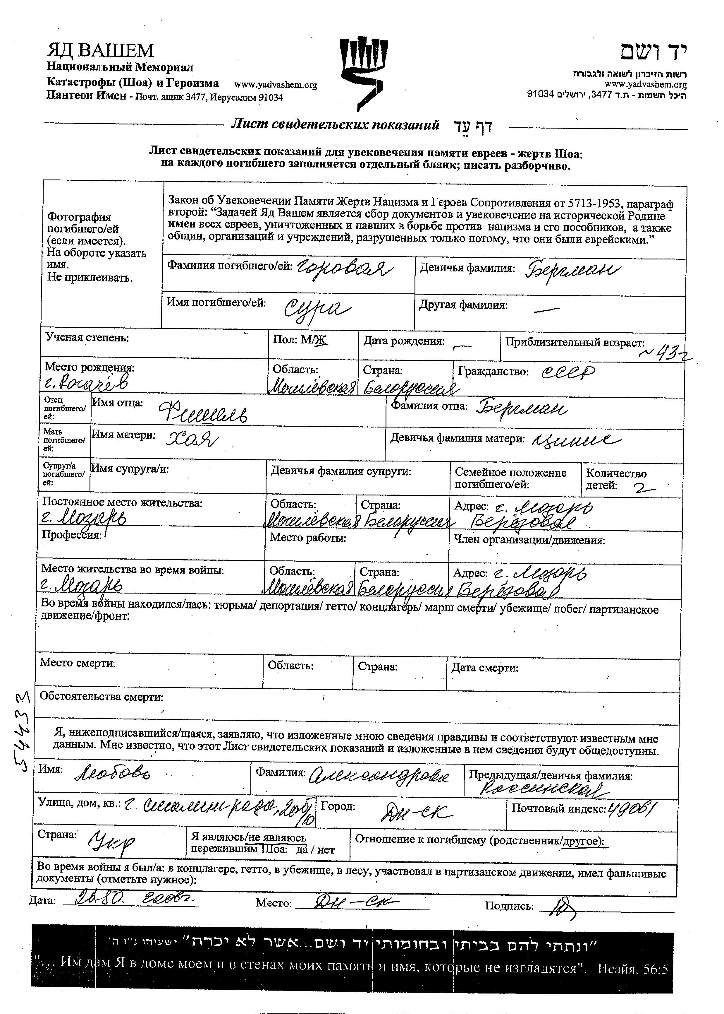 Recherche par date de la mort pendant la période de la Shoah: 1933-1945. Sélectionnez 'Exact'; dans la liste pour rechercher l'année exacte, ou sélectionner '+/- 2 ans'; ou '+/- 5 ans