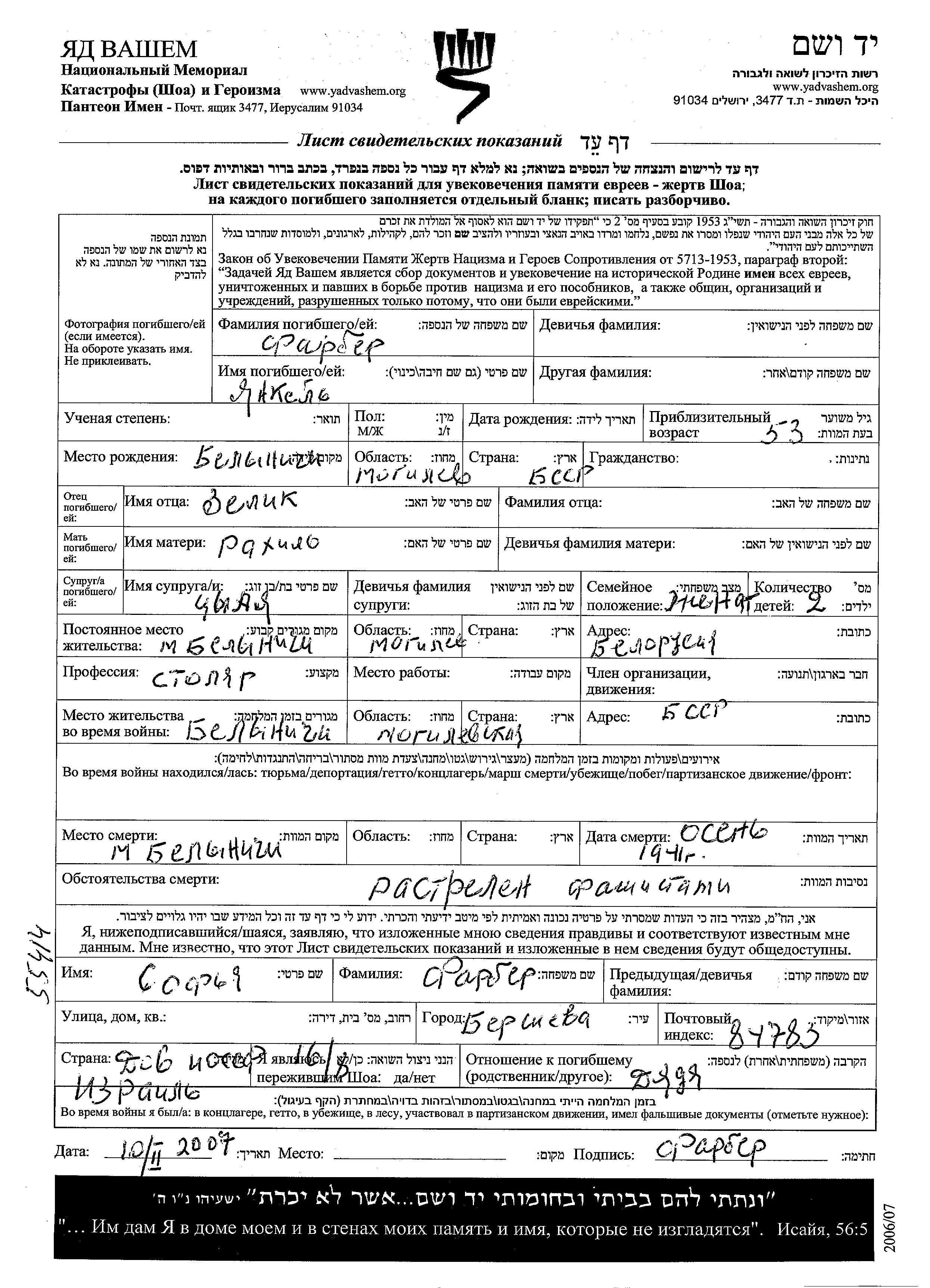 Yad Vashem - Pages of Testimony Names Memorial Collection