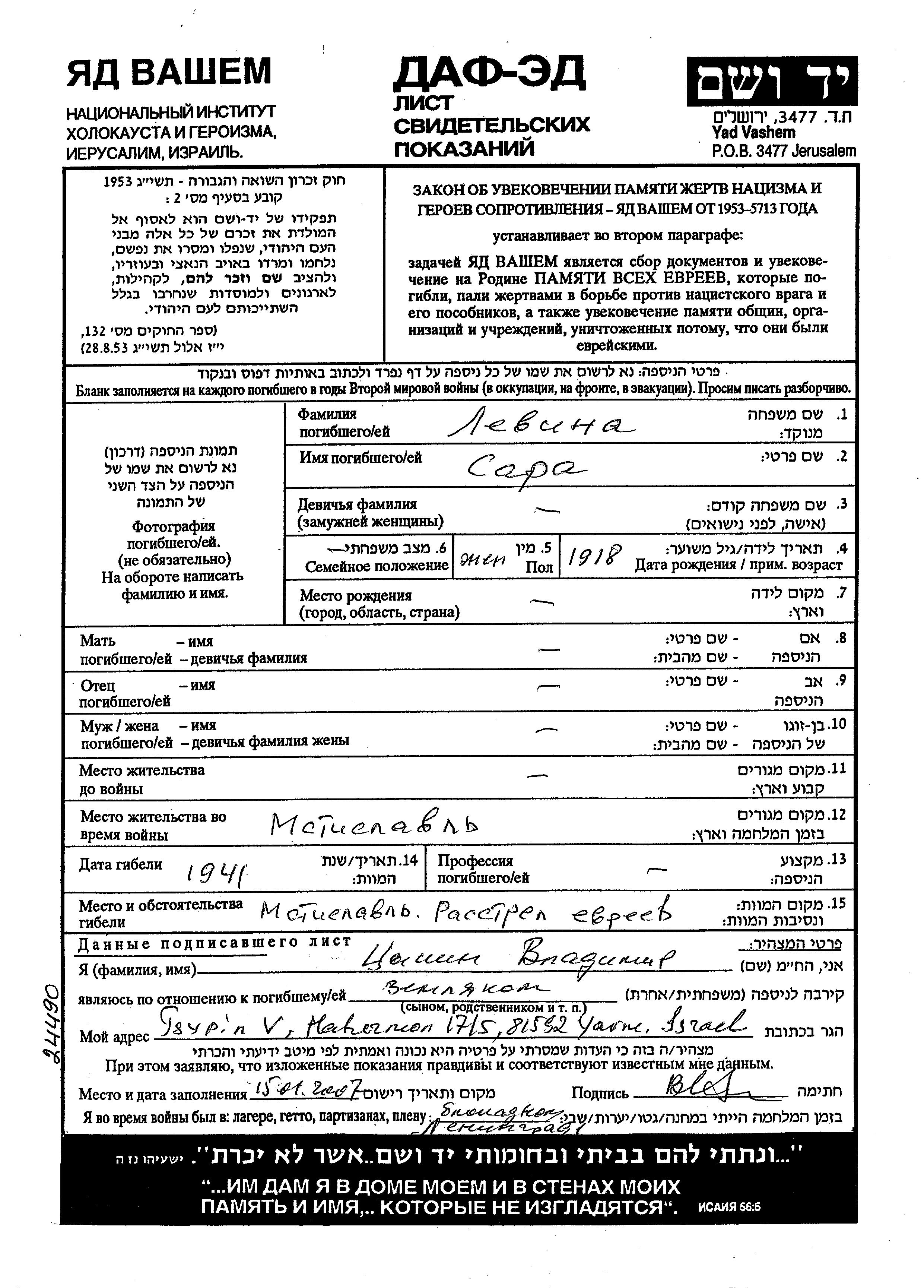 Recherche par date de la mort pendant la période de la Shoah: 1933-1945. Sélectionnez 'Exact'; dans la liste pour rechercher l'année exacte, ou sélectionner '+/- 2 ans'; ou '+/- 5 ans