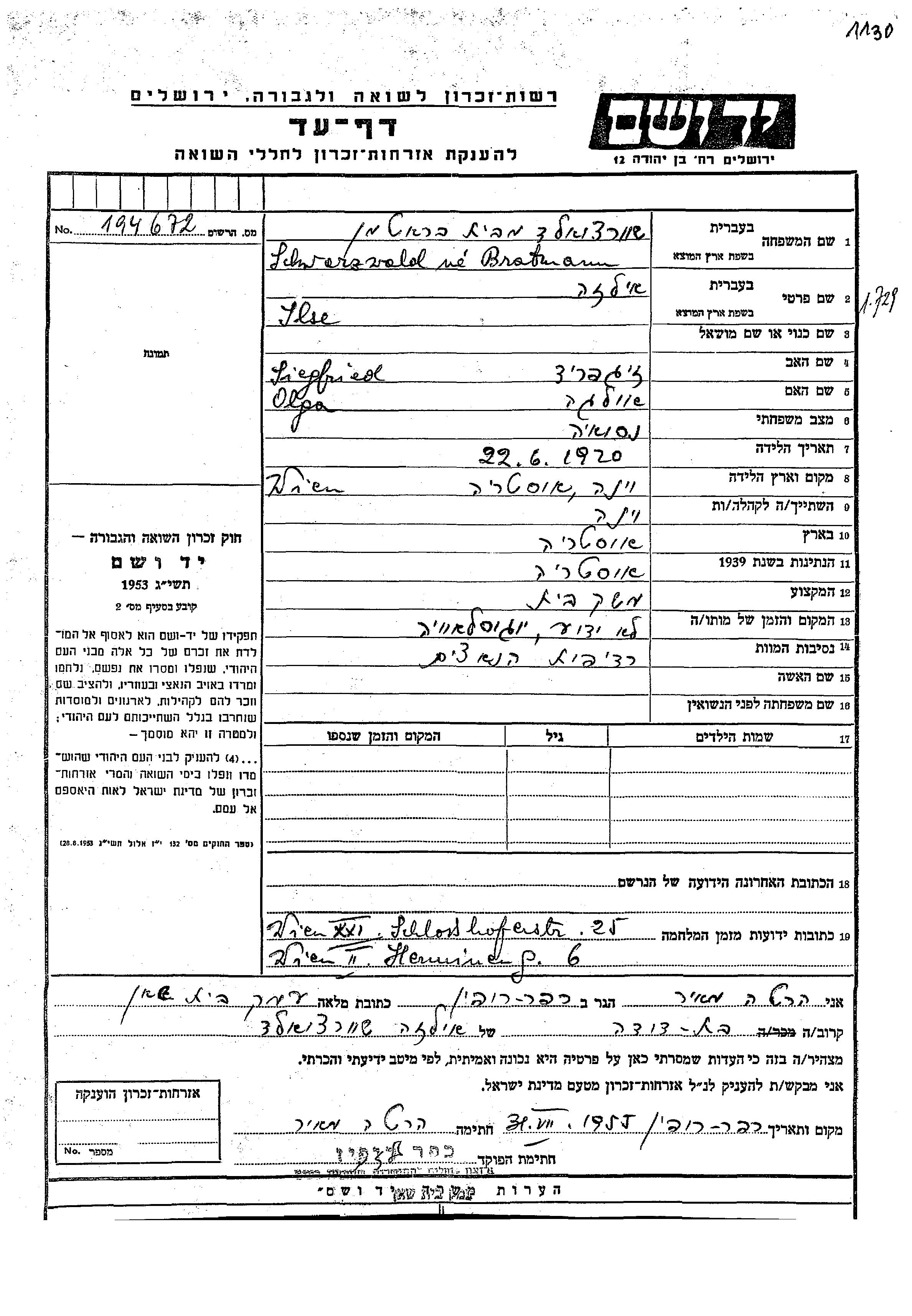 Ilse Schwarzwald née Bratmann est née à Wien, Autriche en 1920, fille de Zigfried et de Olga. Elle était Au foyer et Mariée. Avant la seconde guerre mondiale elle vivait à Wien, Autriche. Pendant la guerre, elle était à Wien, Autriche.