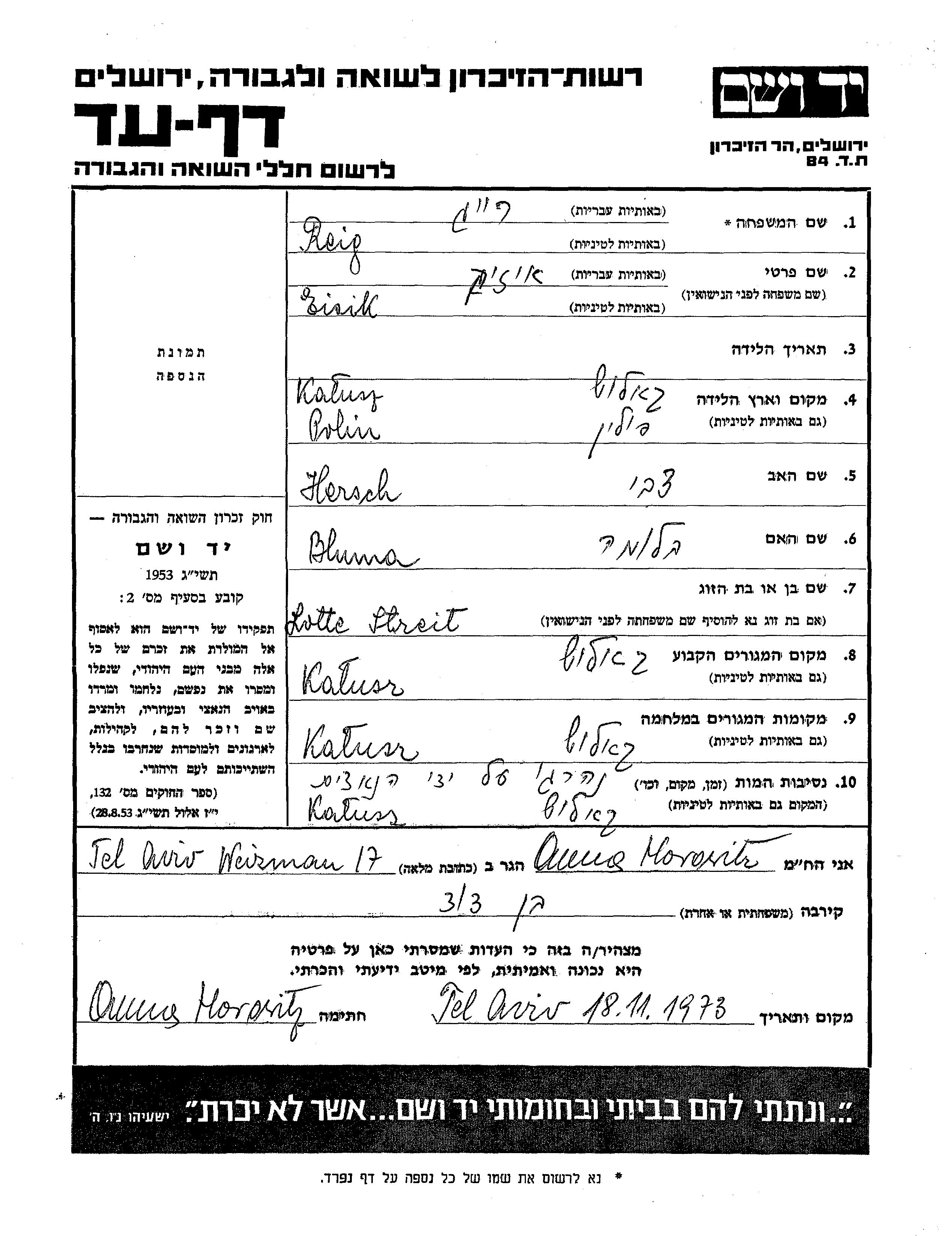 Yad Vashem - Pages of Testimony Names Memorial Collection