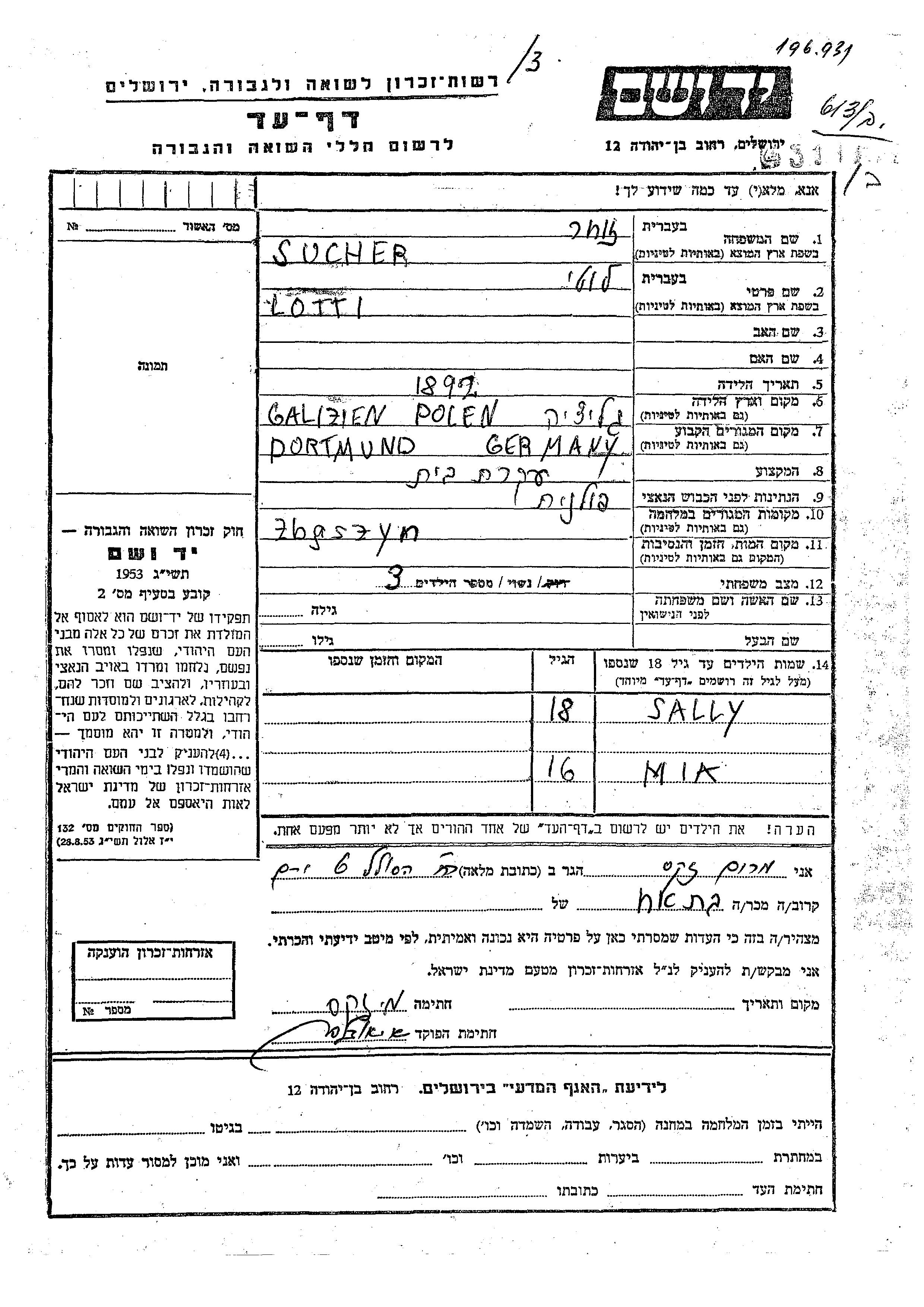 Lotti Sucher Zukher est née à Galicia Region, Pologne en 1892. Elle était Femme au foyer et Mariée. Avant la seconde guerre mondiale elle vivait à Dortmund, Allemagne. Pendant la guerre, elle était à Zbaszyn, Pologne.