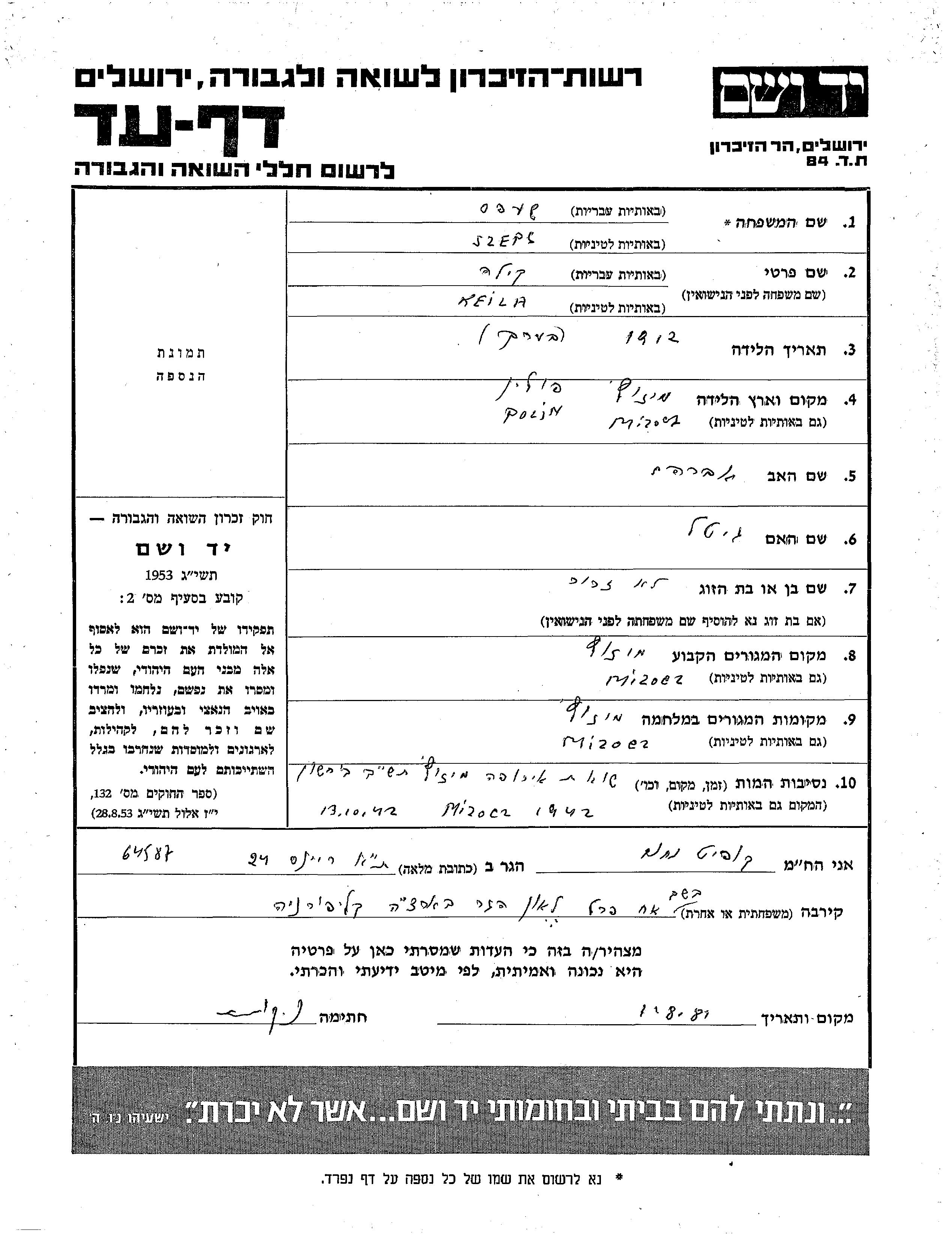 Yad Vashem - Pages of Testimony Names Memorial Collection