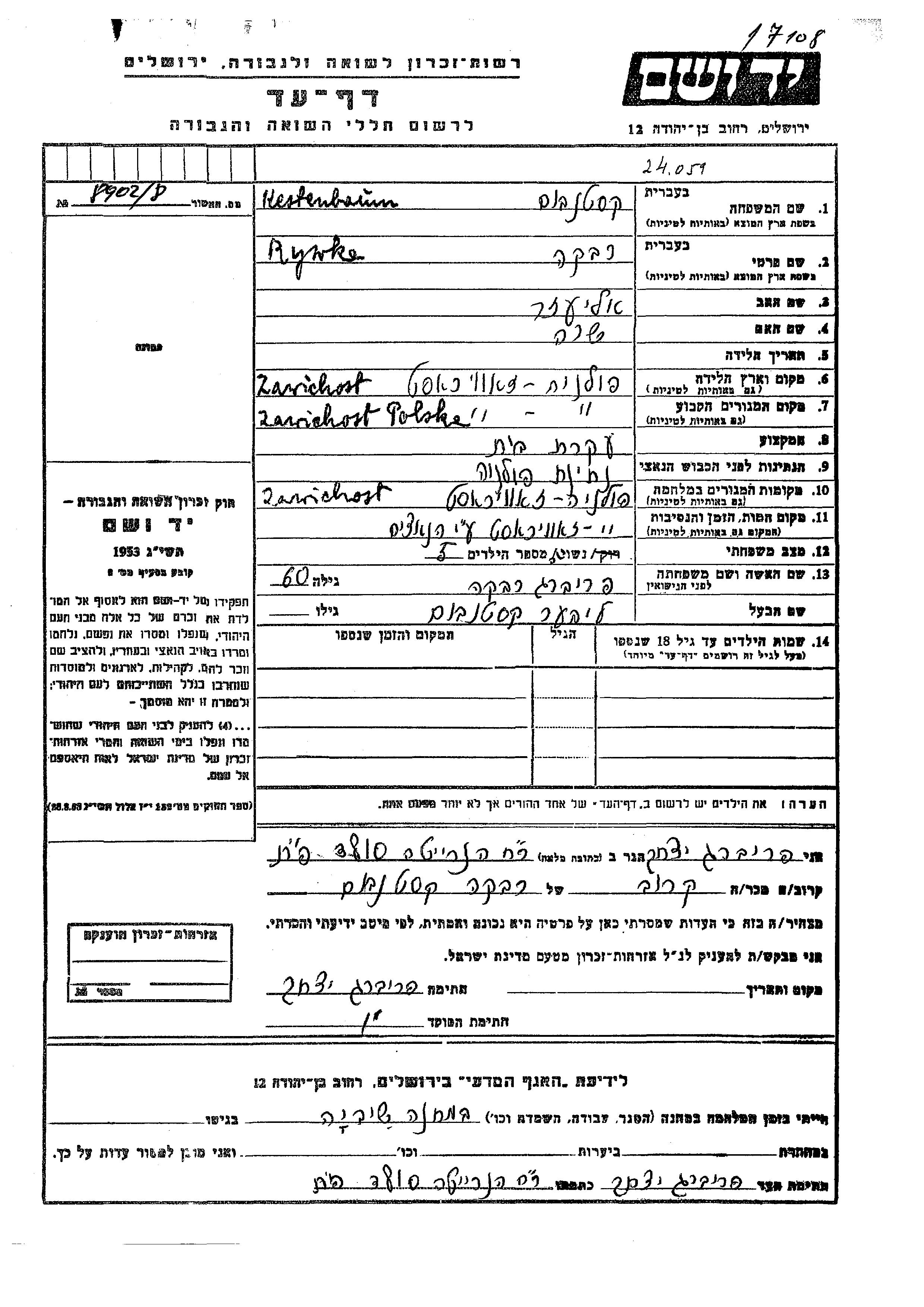 Yad Vashem - Pages of Testimony Names Memorial Collection