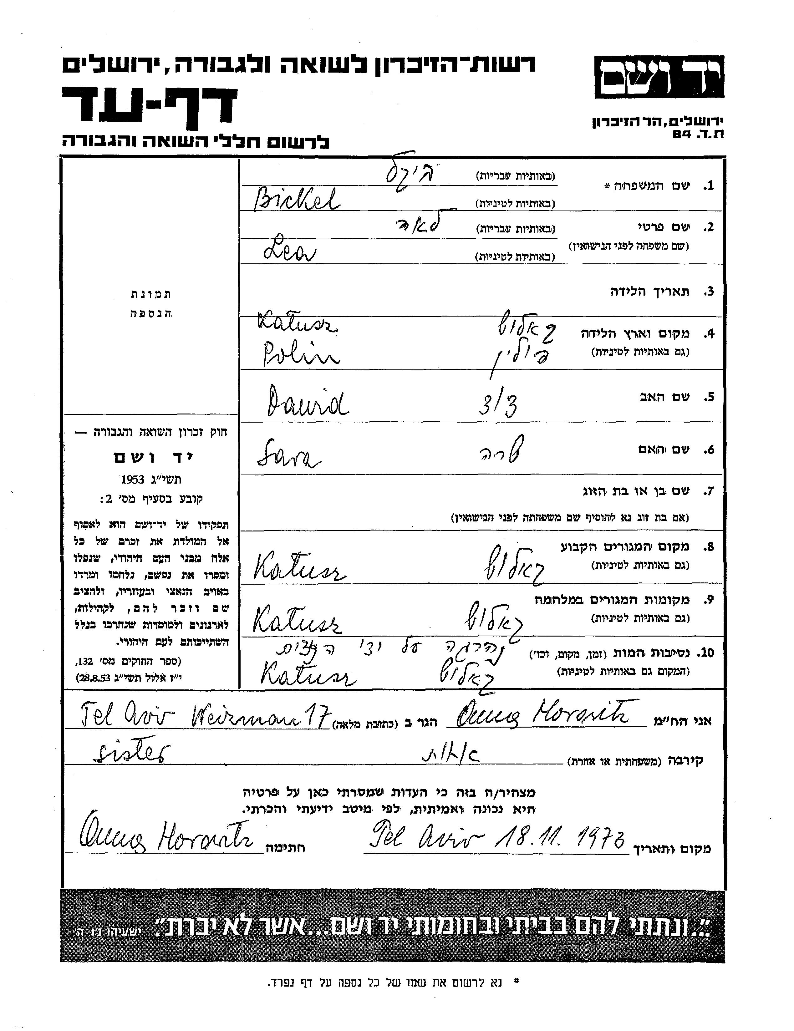Yad Vashem - Pages of Testimony Names Memorial Collection