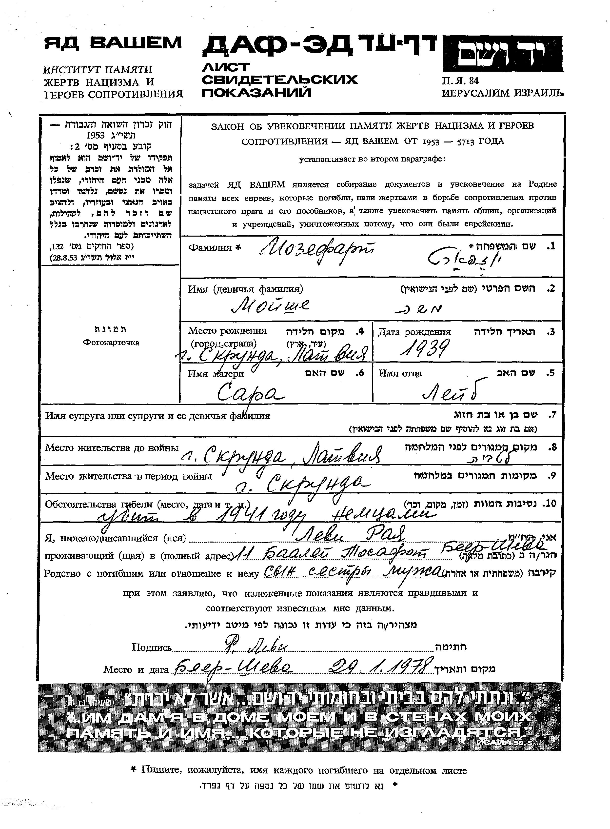 Yad Vashem - Pages of Testimony Names Memorial Collection