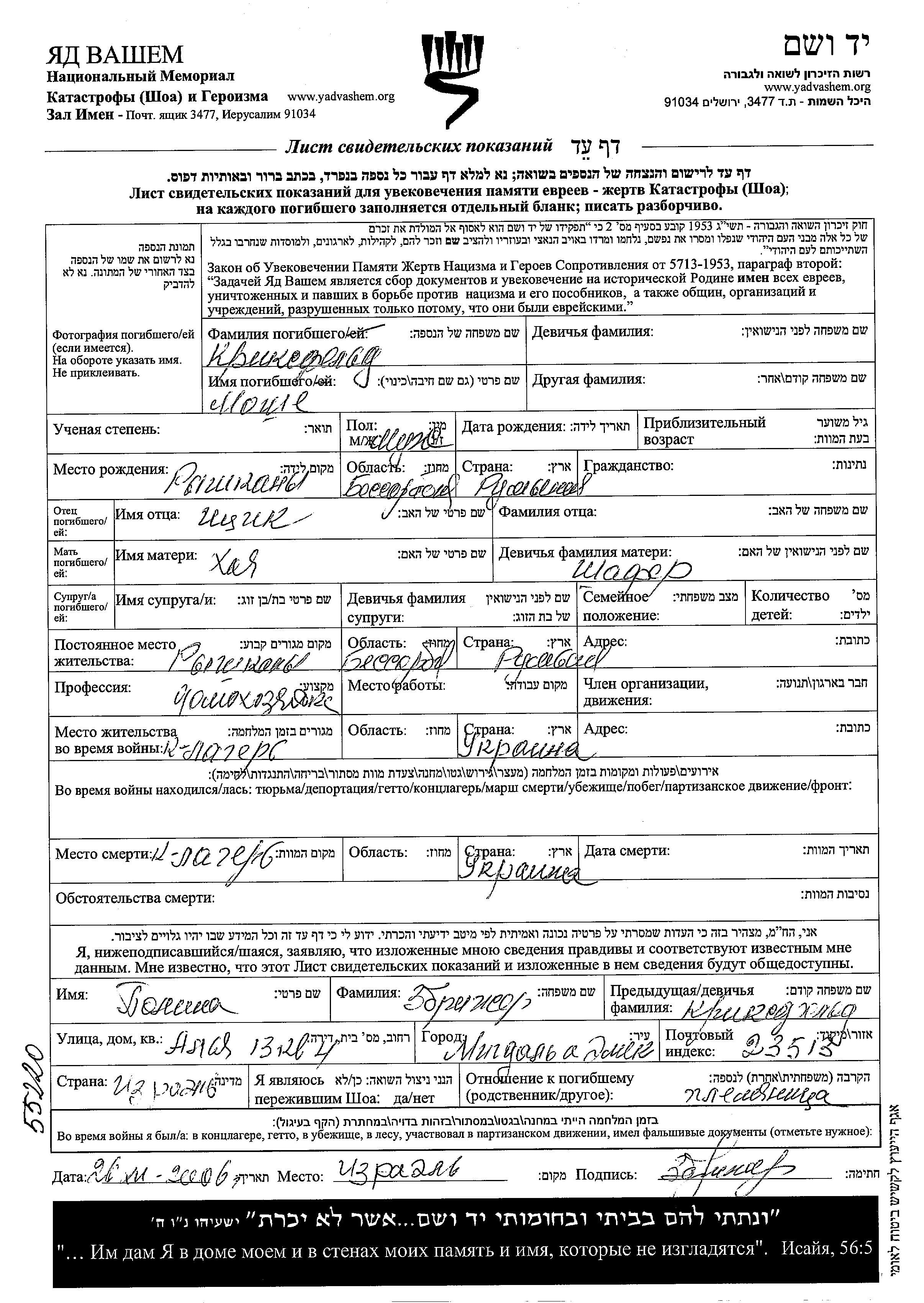 Yad Vashem - Pages of Testimony Names Memorial Collection