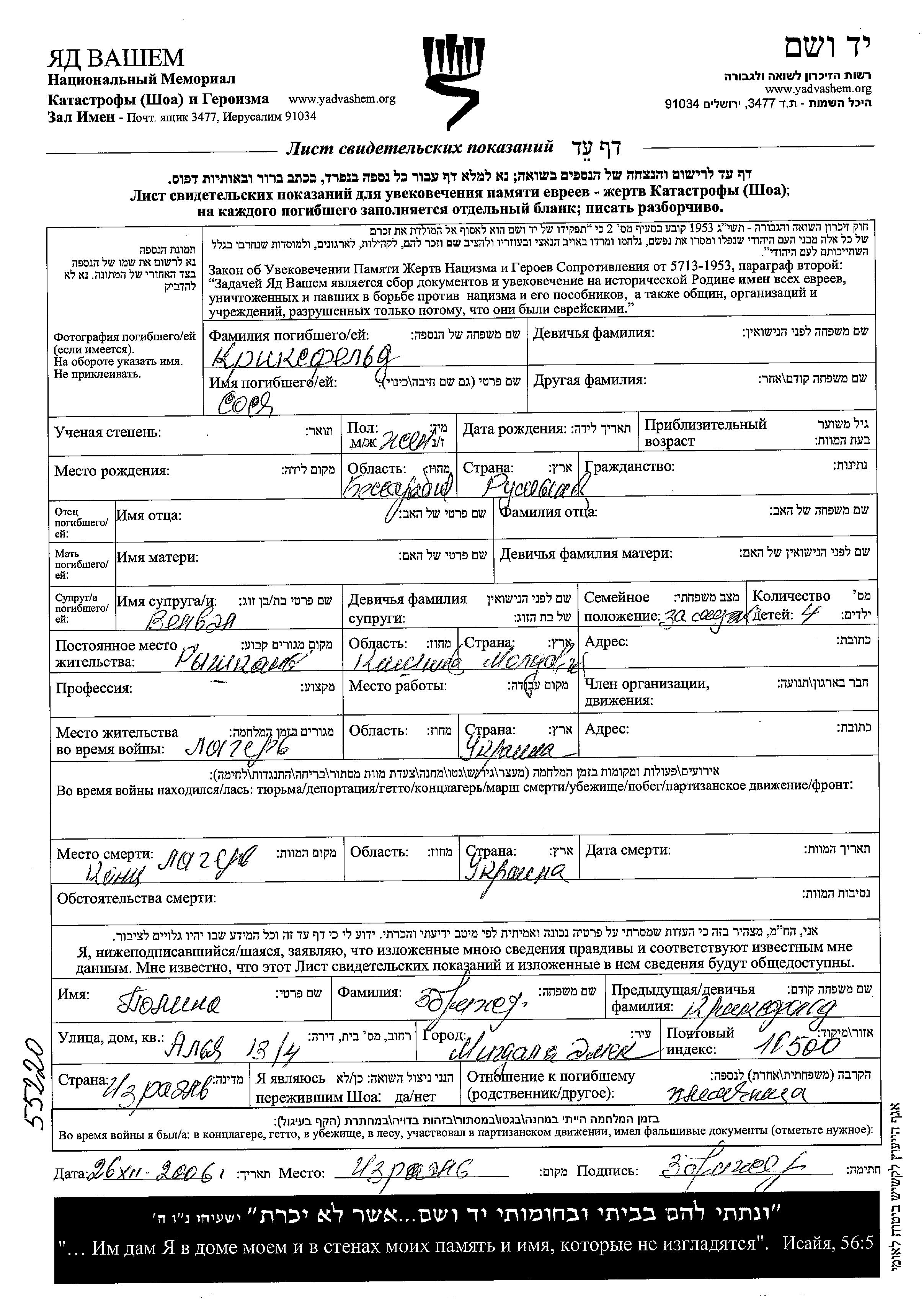 Yad Vashem - Pages of Testimony Names Memorial Collection