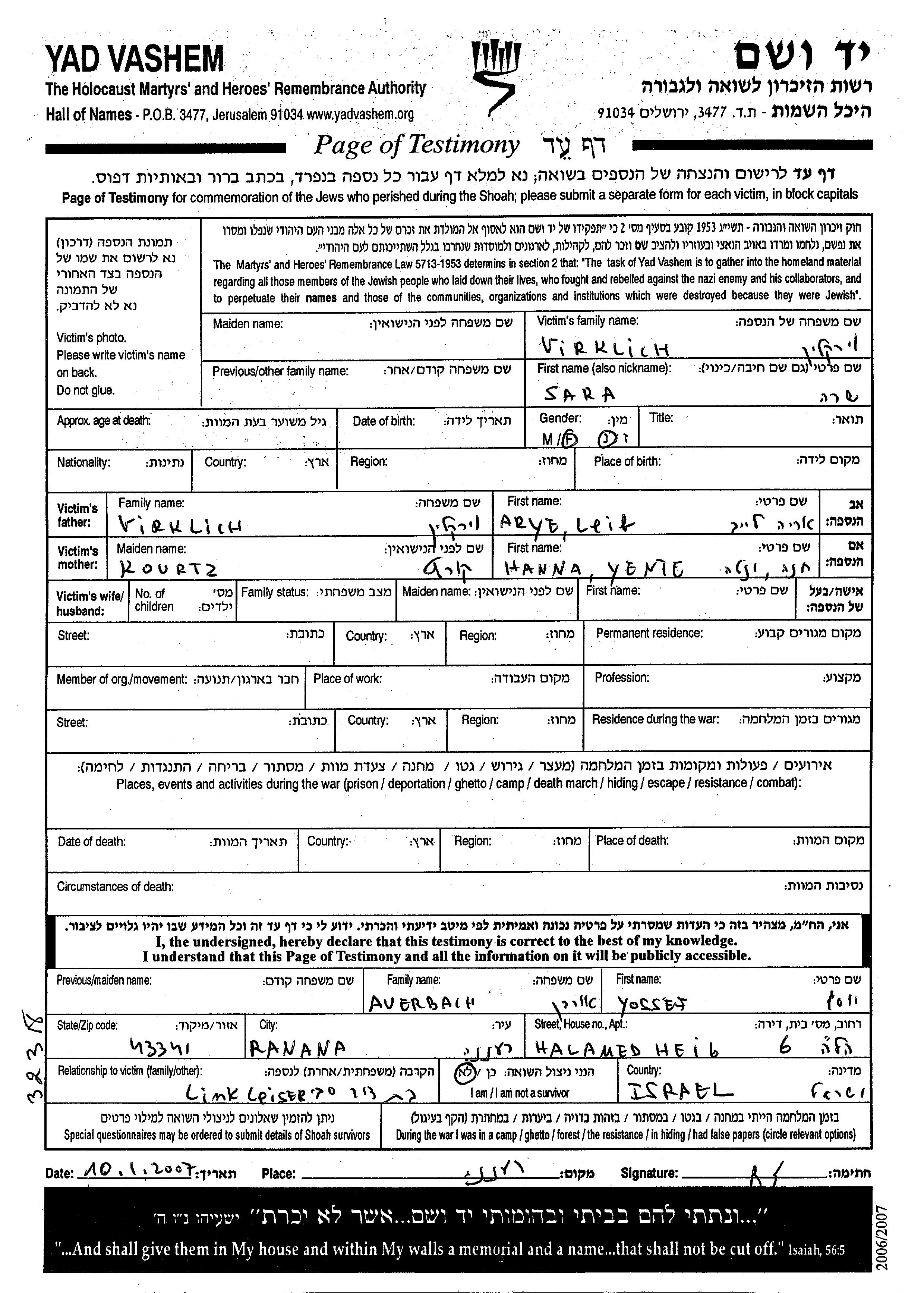 Yad Vashem - Pages of Testimony Names Memorial Collection