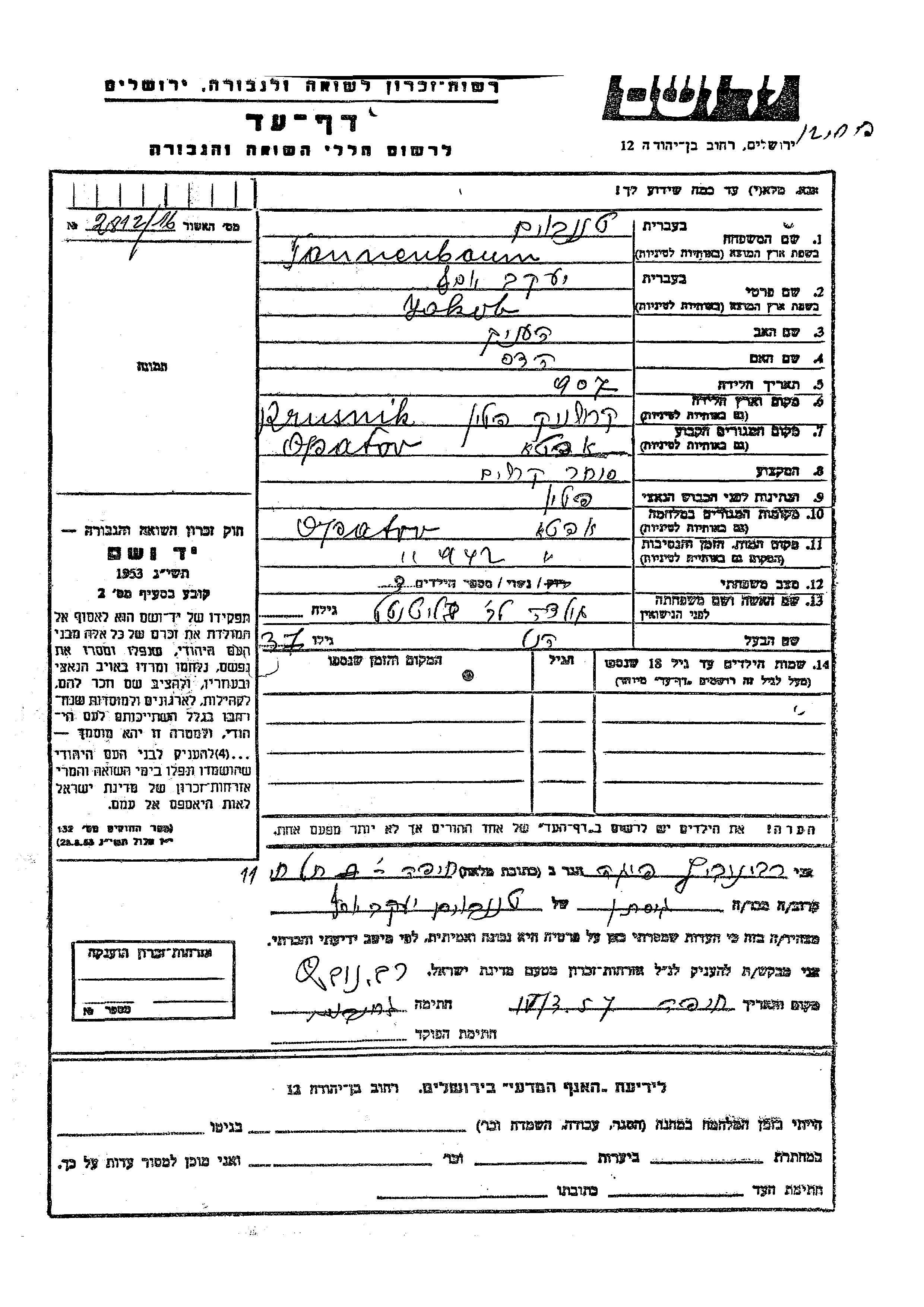 Yad Vashem - Pages of Testimony Names Memorial Collection