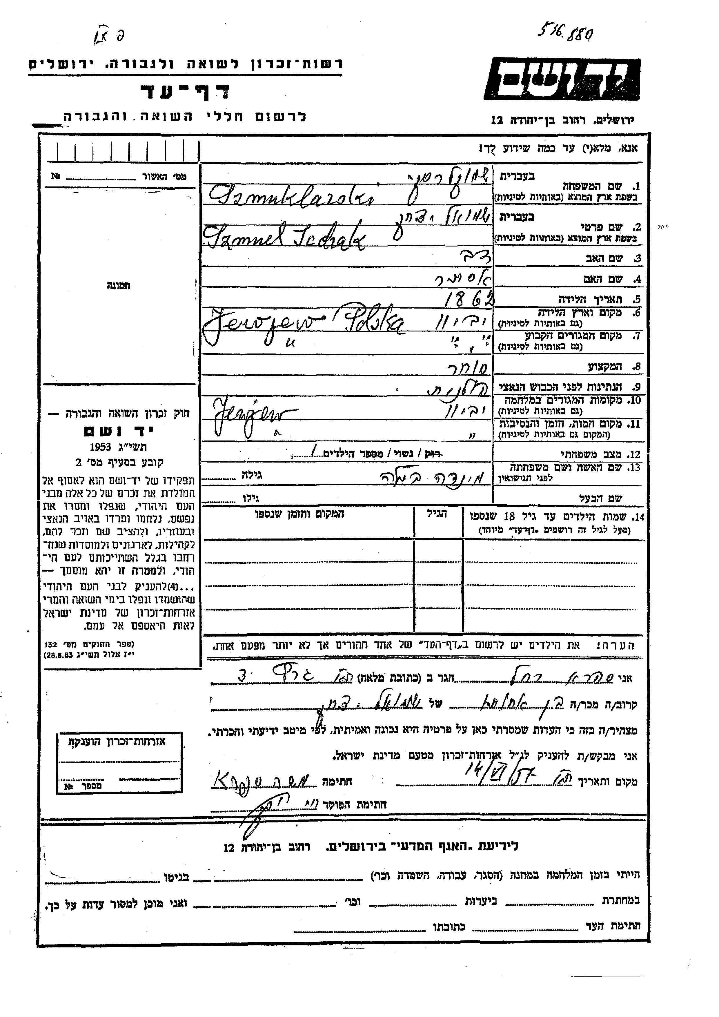 Yad Vashem - Pages of Testimony Names Memorial Collection