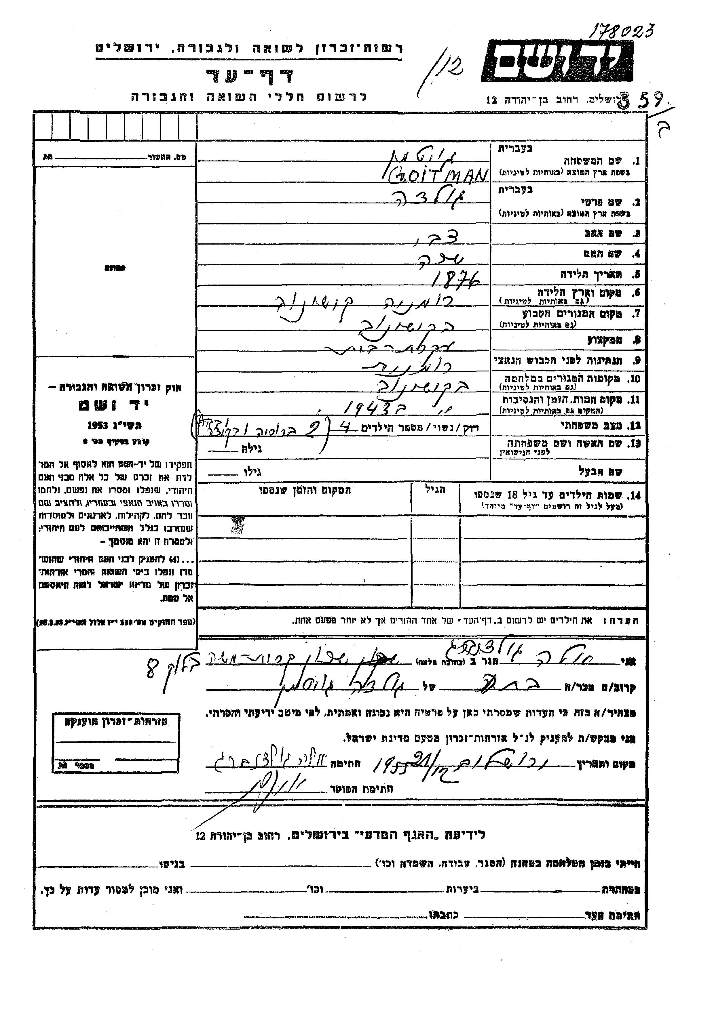 Yad Vashem - Pages of Testimony Names Memorial Collection