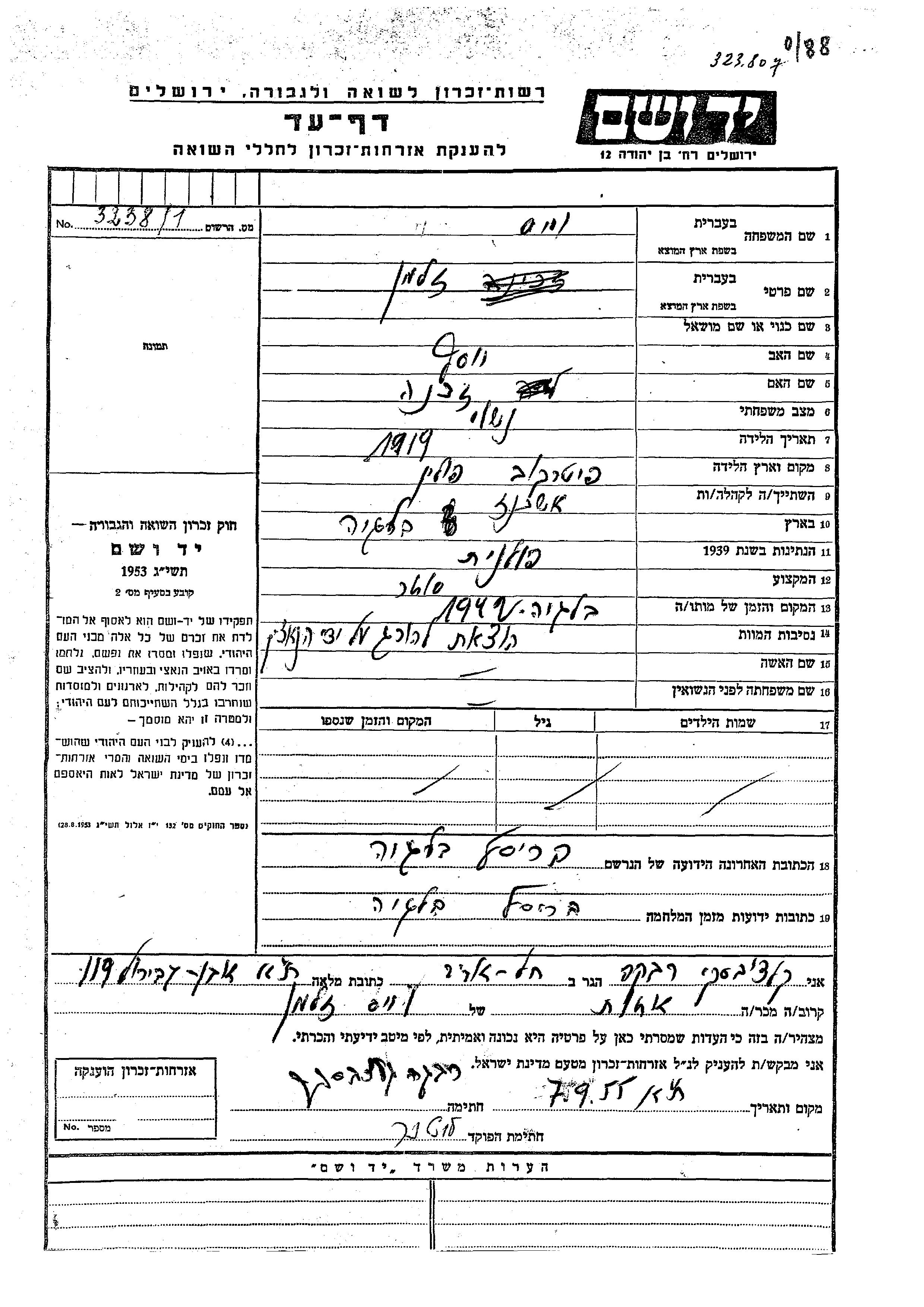 Yad Vashem - Pages of Testimony Names Memorial Collection