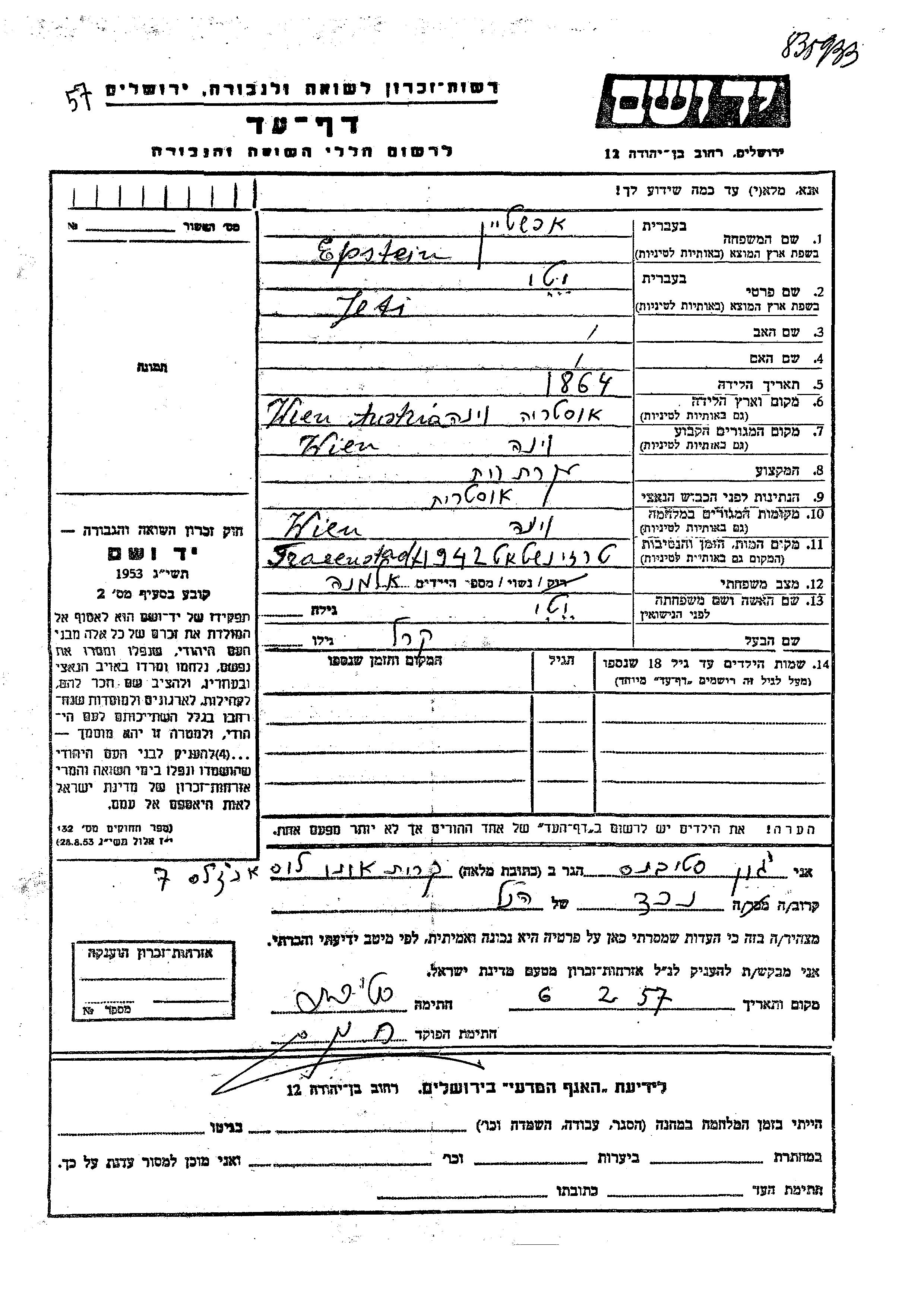 Yad Vashem - Pages of Testimony Names Memorial Collection