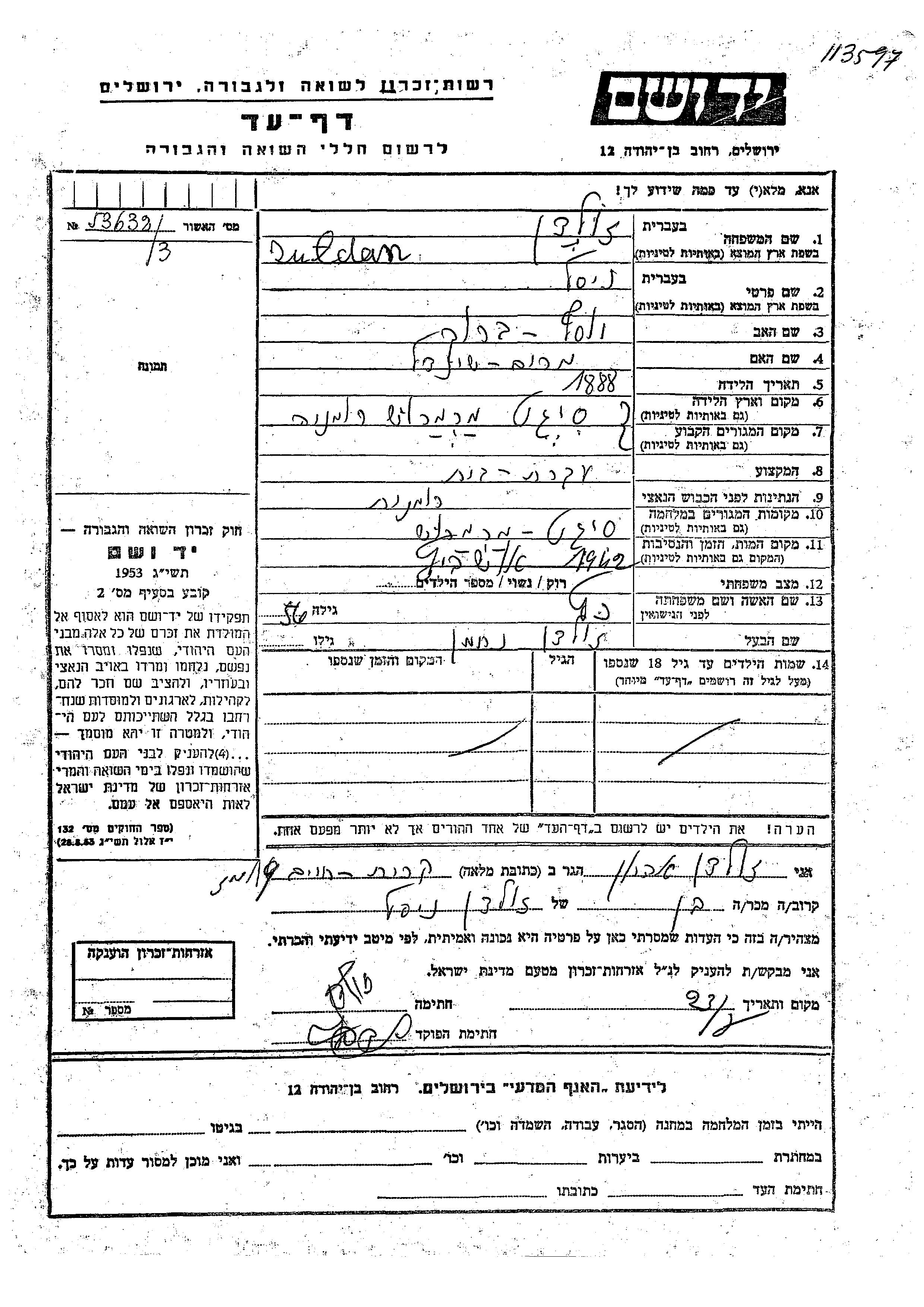 Yad Vashem - Pages of Testimony Names Memorial Collection