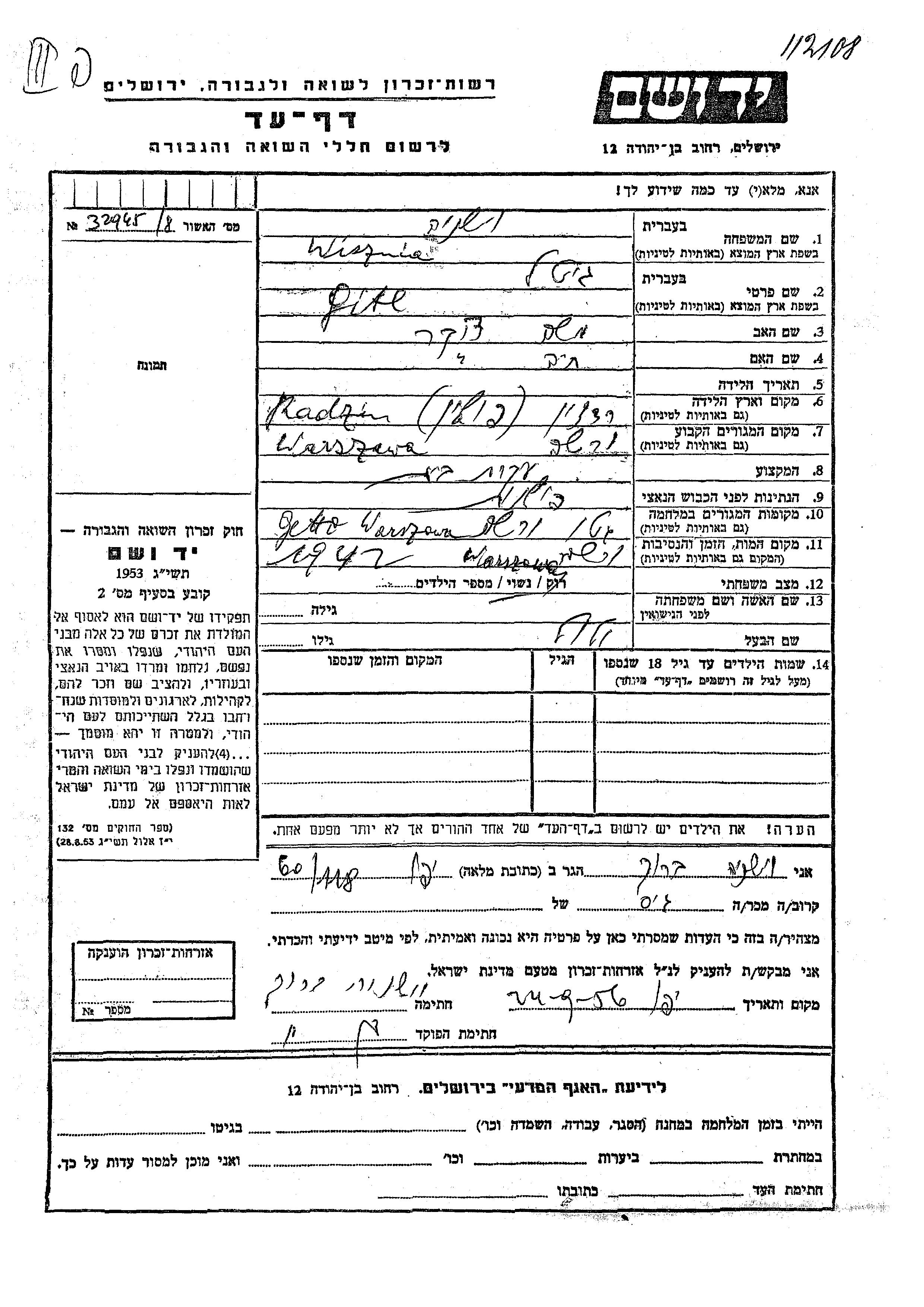Yad Vashem - Pages of Testimony Names Memorial Collection