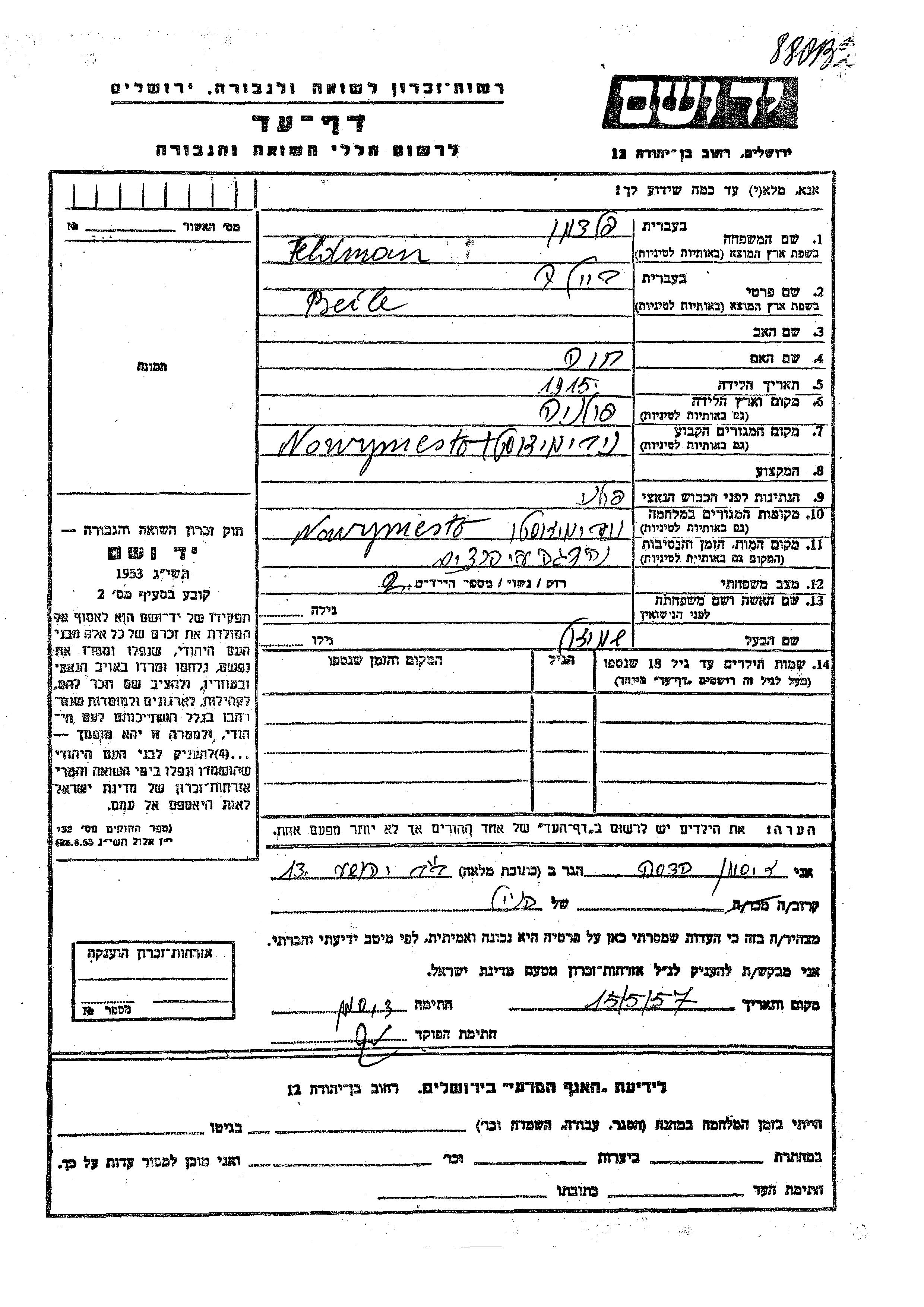 Yad Vashem - Pages of Testimony Names Memorial Collection