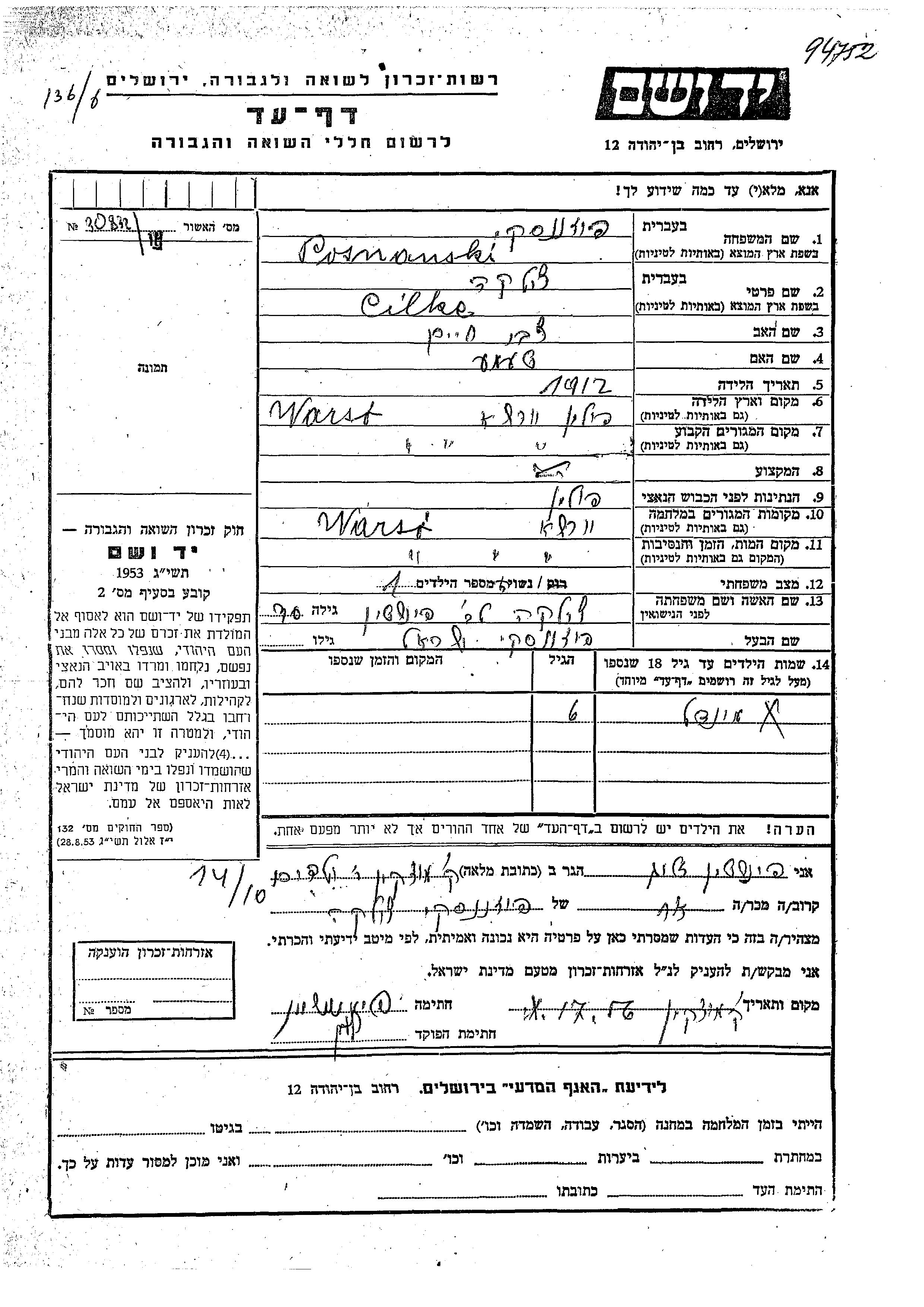 Cilke a été assassinée pendant la Shoah. Lieu de la mort: Warsaw, Pologne.