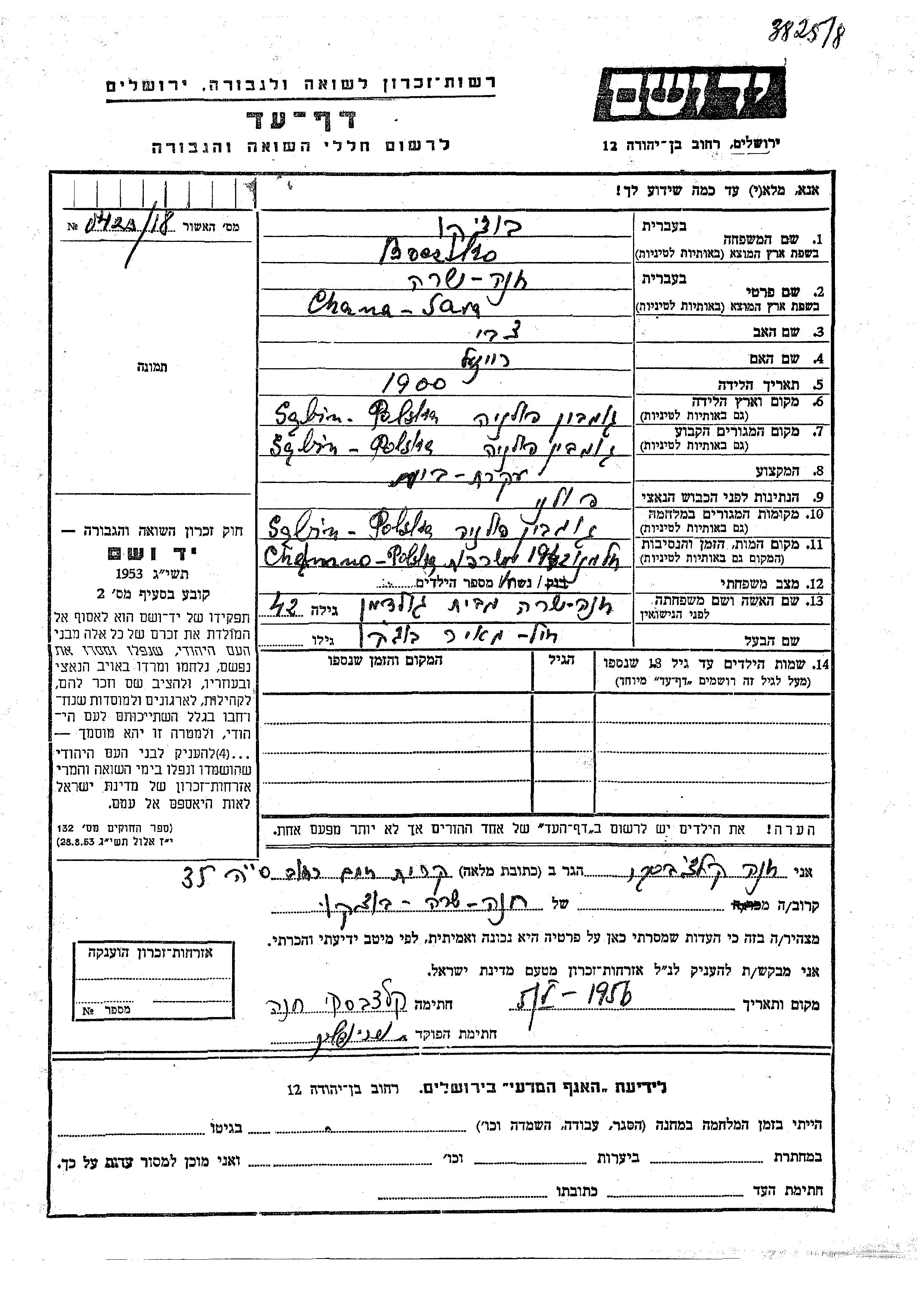 Chana Sara a été assassinée pendant la Shoah. Lieu de la mort: Chelmno, Pologne en 1942.