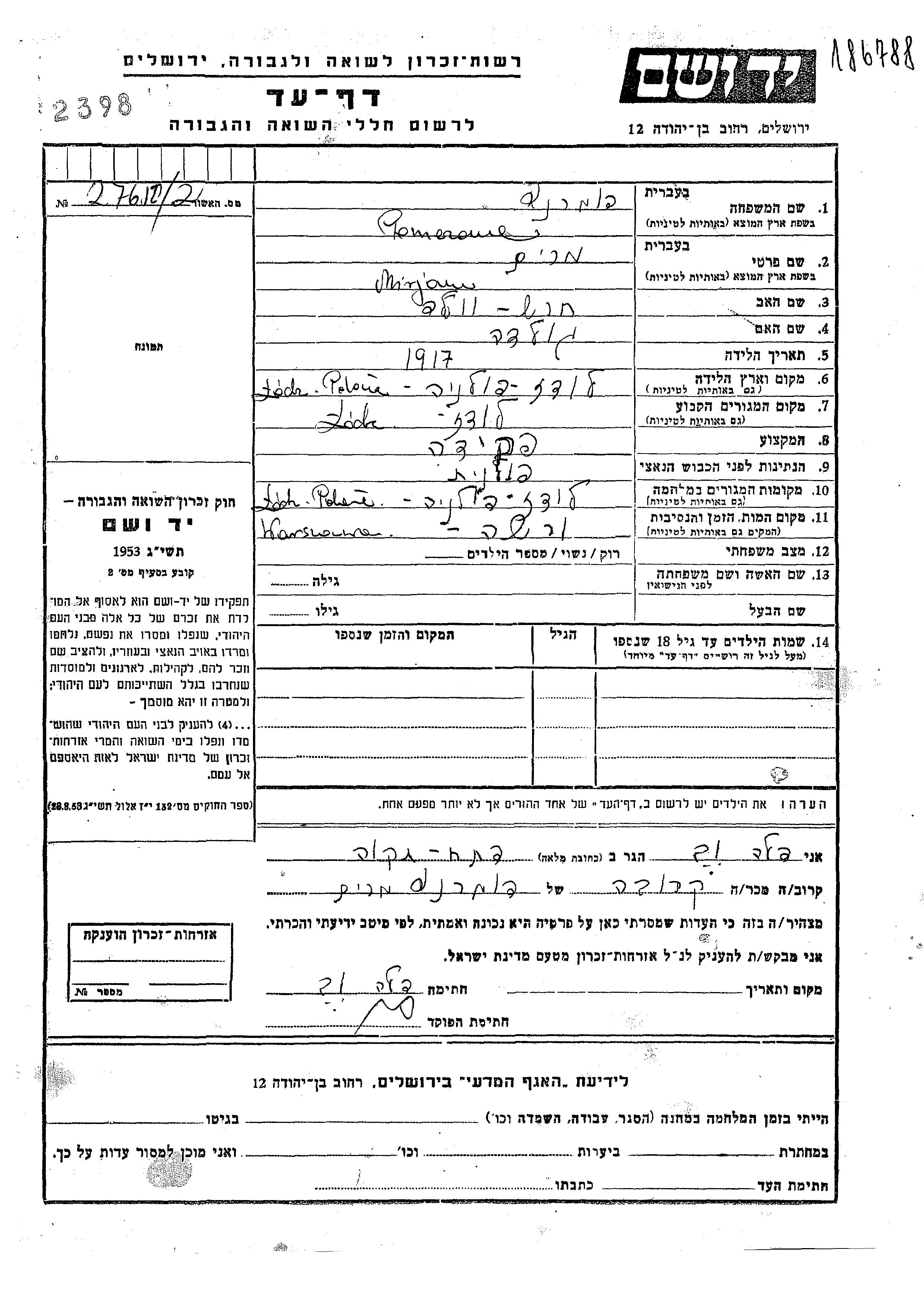 Yad Vashem - Pages of Testimony Names Memorial Collection