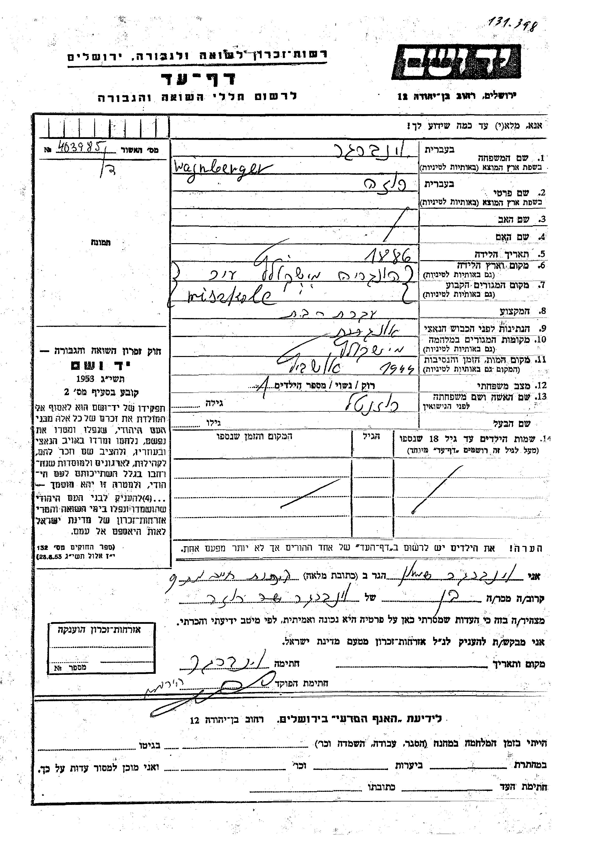 Yad Vashem - Pages of Testimony Names Memorial Collection
